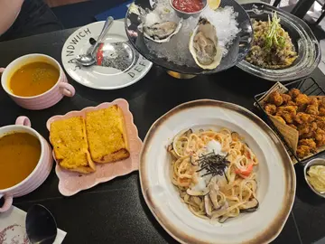 原來粉嶺開咗間新嘅西餐,可惜位置比較隔涉,不過裝修都幾靚幾有氣派,而且仲有生蠔食!🍽️日本蠔 $30@1隻 (跟餐優惠價)我哋略嫌生蠔set有啲多,所以散叫咗兩隻。今日嘅生蠔係日本生蠔,食落鮮甜、肥美厚肉,帶有Creamy嘅口感,好新鮮。有機會下次可以試埋其他產地嘅生蠔!🍽️炸魷魚鬚 $68份量幾多,新鮮炸起出爐熱辣辣上枱。炸魷魚鬚外皮好脆,同時炸粉唔會太厚,好惹味。🍽️南瓜蟹肉焗酥皮湯 (升級套餐後+$20)餐湯我哋升級咗做焗酥皮湯,賣相幾吸引。南瓜湯非常濃稠,配上少許蟹肉絲增添口感及鮮味,味道濃郁而且豐富,好鮮甜!🍽️地中海漁夫海蜆意粉 $128海蜆份量充足,無沙及碎殼。意粉帶有少許香草味甜甜地幾好味但唔覺有辣味,意粉口感偏硬身,個人幾鍾意。🍽️美國牛小排蒜香欖油意粉 $188之前睇某個韓國綜藝已經好想食嘅橄欖油意粉,終於俾我食到!欖油意粉香氣逼人,調味得宜,麵條煙韌彈牙,同時加入多種配料令口感及味道非常豐富!另外意粉上嘅牛小排更加係加咗唔少分數,牛小排非常軟滑,只稍微用火槍燒過,帶有濃烈焦香及牛香氣,配上炸蒜片食好夾!係我近期粉嶺食過數一數二嘅西餐,唔錯。…Read More