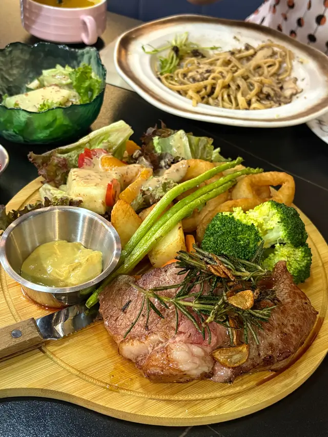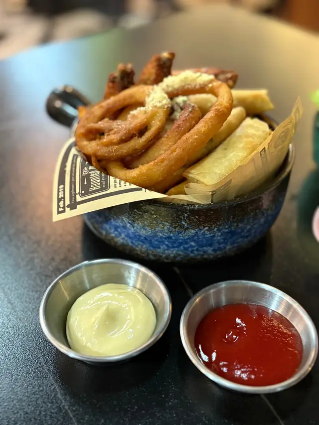 原來粉嶺開咗間新嘅西餐,可惜位置比較隔涉,不過裝修都幾靚幾有氣派,而且仲有生蠔食!🍽️日本蠔 $30@1隻 (跟餐優惠價)我哋略嫌生蠔set有啲多,所以散叫咗兩隻。今日嘅生蠔係日本生蠔,食落鮮甜、肥美厚肉,帶有Creamy嘅口感,好新鮮。有機會下次可以試埋其他產地嘅生蠔!🍽️炸魷魚鬚 $68份量幾多,新鮮炸起出爐熱辣辣上枱。炸魷魚鬚外皮好脆,同時炸粉唔會太厚,好惹味。🍽️南瓜蟹肉焗酥皮湯 (升級套餐後+$20)餐湯我哋升級咗做焗酥皮湯,賣相幾吸引。南瓜湯非常濃稠,配上少許蟹肉絲增添口感及鮮味,味道濃郁而且豐富,好鮮甜!🍽️地中海漁夫海蜆意粉 $128海蜆份量充足,無沙及碎殼。意粉帶有少許香草味甜甜地幾好味但唔覺有辣味,意粉口感偏硬身,個人幾鍾意。🍽️美國牛小排蒜香欖油意粉 $188之前睇某個韓國綜藝已經好想食嘅橄欖油意粉,終於俾我食到!欖油意粉香氣逼人,調味得宜,麵條煙韌彈牙,同時加入多種配料令口感及味道非常豐富!另外意粉上嘅牛小排更加係加咗唔少分數,牛小排非常軟滑,只稍微用火槍燒過,帶有濃烈焦香及牛香氣,配上炸蒜片食好夾!係我近期粉嶺食過數一數二嘅西餐,唔錯。…查看更多