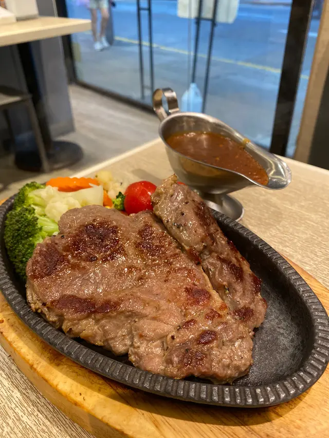 足足重10安士的牛肉眼扒,份量十足,牛肉味濃郁,好好食哦!配黑椒汁更加好味