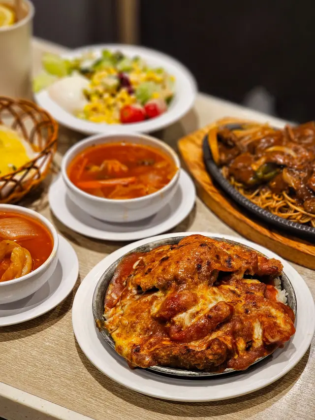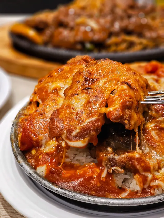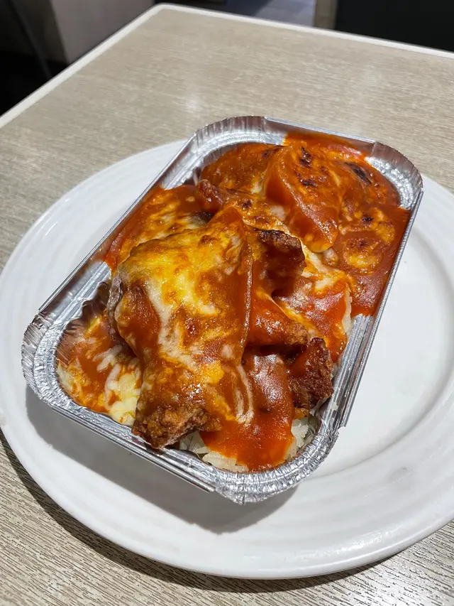 表面加咗佈滿大量芝士碎,芝味香濃,正呀!鮮茄汁酸酸甜甜的,都幾開胃~有2-3件豬扒,啖啖肉,豬味香濃,大件夾抵食