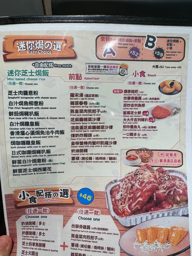 鐵板扒之選 & 迷你焗之選當晚點咗一個「迷你焗之選」set,包括迷你芝士焗飯+前點+小食+飲品。鐵板扒之選則包括頭盤、鐵板扒及飲品