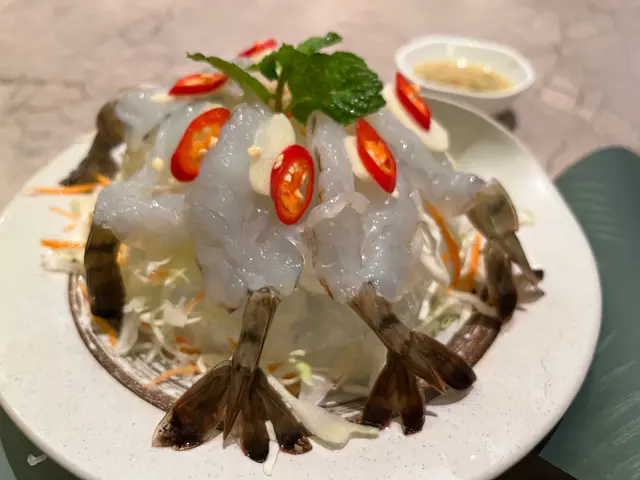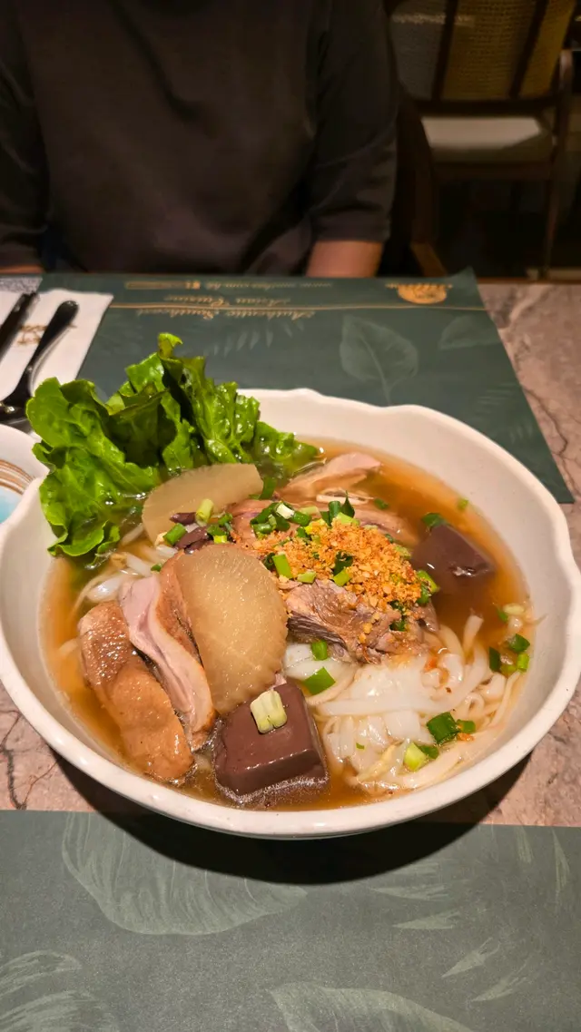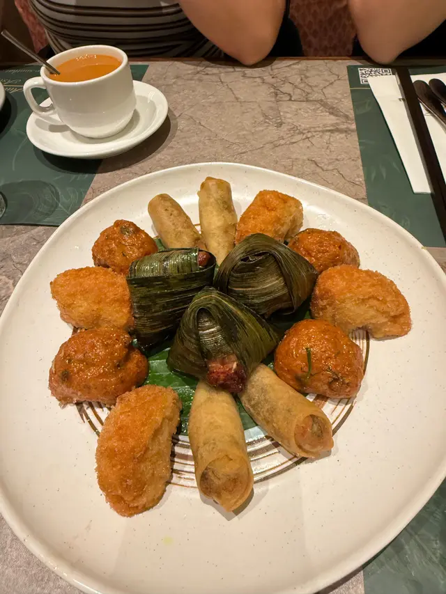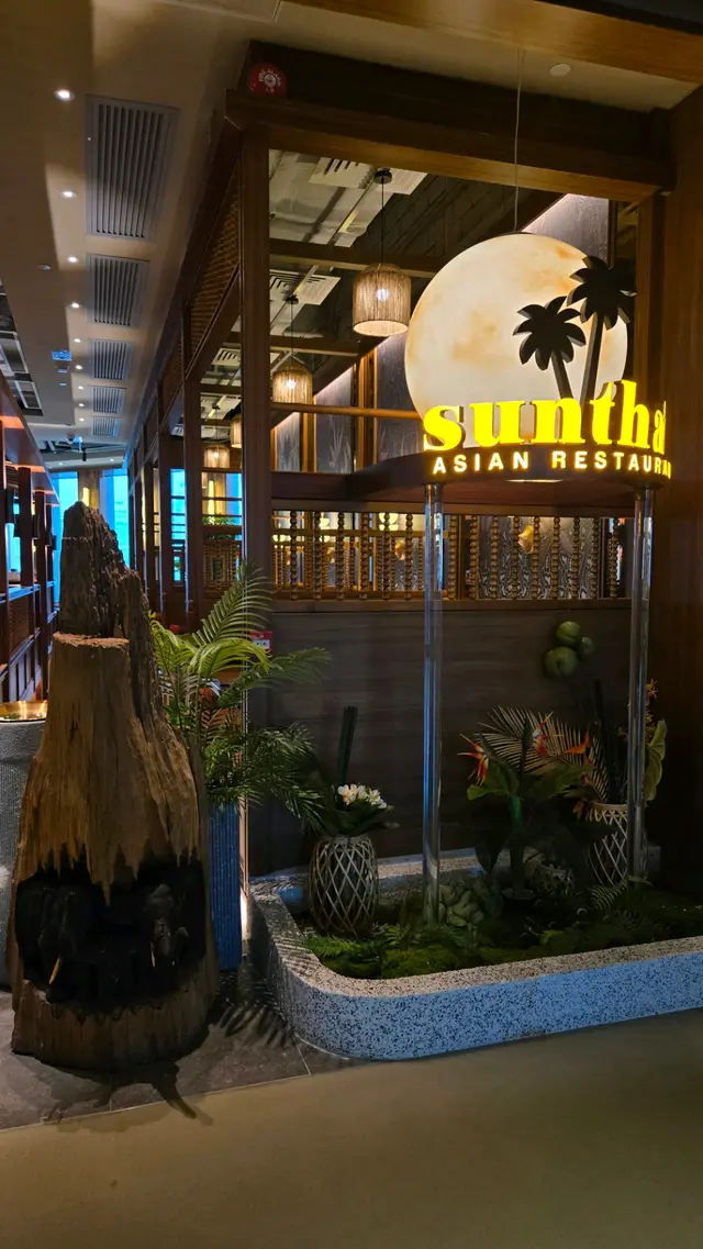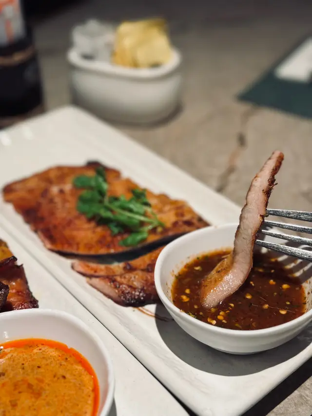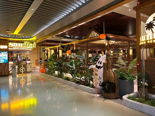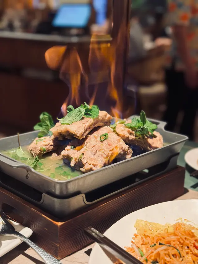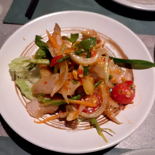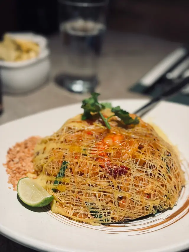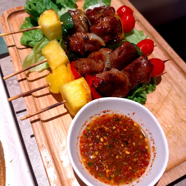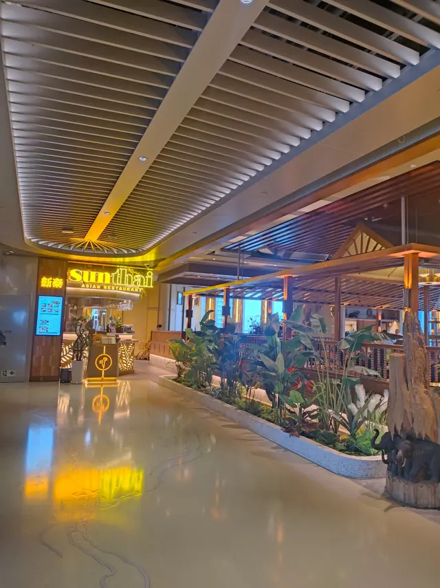 今日去左啟德雙子匯行下商場,食個lunch.同朋友去左一期14樓嘅泰國菜新泰食午餐。餐廳裝修好有渡假風情,坐得好舒服,而且唔會噪。星期六午市都仲有set lunch, 我地叫左一個越式蟹肉炒粉絲 加配 燒豬頸肉沙律。餐飲跟配凍即磨咖啡越式蟹肉炒粉絲都幾大碟同足料, 蟹肉都足,食落香甜,粉絲炒得乾爽口,唔會太重口味,味道唔錯。加$25 配埋 燒豬頸肉沙律,酸辣開胃,豬頸肉爽口好食,沙律菜夠新鮮。串燒羊肉 賣相好靚,燒得啱啱好,配料蕃茄仔,洋蔥,菠蘿等等,色彩鮮艷。羊肉粒,肉質有咬口,帶少少筋,有香濃嘅羊肉味,配埋酸酸地嘅醬汁好夾。蔬果配料新鮮,食落好juicy, 風別係菠蘿超香甜多汁,必試羊肉串燒。原個菠蘿咖哩蝦充滿椰香嘅咖哩食落香甜順口,夠厚身,蝦數過有8隻左右,用咖哩煮完都有食到蝦嘅鮮味,肉質彈牙。放左陣都仲暖暖地嘅香脆印度酥餅配埋咖哩好好食,外脆內軟。泰式凍奶茶,叫左少冰少甜,奶茶味道夠香濃,幾好飲!餐廳都好多泰國人店員,服務有禮親切,環境都好好。…查看更多