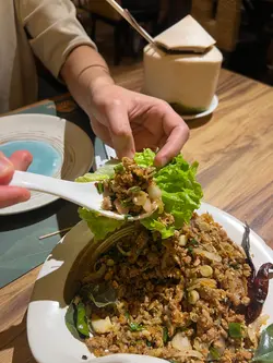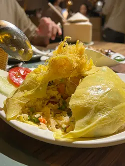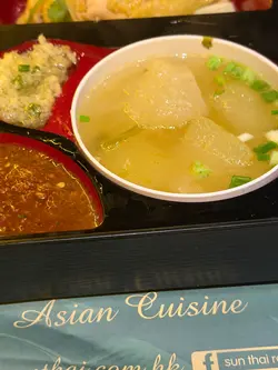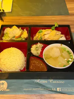 今日去咗這一間《新泰》東南亞餐廳位於尖沙咀、整間由外到內都好有泰式風格、係以淺啡色為主調木系裝置整間店鋪、以黄光色澤坐著寬敞舒適感覺都唔錯!望見餐牌都好多選擇、同時都睇到二人套餐 $228,都叫咗嚟試吓好似幾抵食、三款食物同一款主食揀,仲包兩杯嘢飲!越式蝦米紙卷呢一款蝦米紙卷五顏六色都幾好、用咗通透軟綿米紙包裹蝦及其它配料、入口軟綿帶點多重爽口、沾吓酸醋汁更加好食又醒胃!泰式青咖哩雞印度烤餅呢一款青咖哩雞望見賣相都唔錯、真的好有地道風味、佢嘅青咖哩汁香而美味、配埋雞肉及其它配料、雞肉又有咬口沾滿汁液都唔錯、尤其是佢嘅烤餅啖啖口感、點吓青咖哩汁烤餅別一般的味道!馬拉盞炒通菜呢一碟馬拉盞炒通菜好有地道風味、翠綠通菜色澤加埋佢嘅味道、感覺好似蝦醬一樣咁惹味、佢嘅味道好香濃美味一樣咁爽又好食!港式凍奶茶 +$3 凍檸檬茶 +$3泰式甜品小拼盤$98呢一款一碟有4種味道、一共有8件細細件、有椰香大菜糕、椰汁西米糕、斑斕糕及其它糕、每一款都唔錯尤其是斑斕口感煙糯、甜度適中帶點斑斕味道! …查看更多