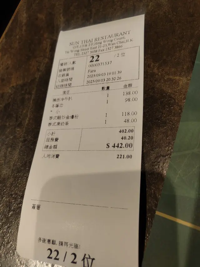 Sun Thai Restaurant (Hing Wong Court)