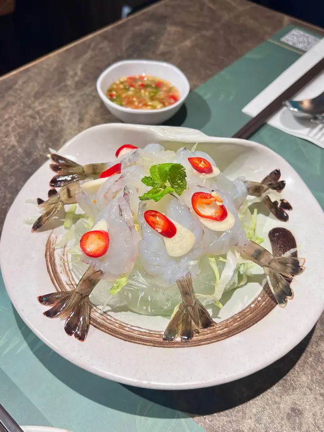 泰式柚子蝦沙律醬汁真係非常美味!甜甜酸酸!仲有好多隻爽脆嘅大蝦!材料又豐富有魷魚🦑脆卜卜嘅香蒜!香甜嘅西柚加香脆嘅腰果😋😋😋⋯⋯
