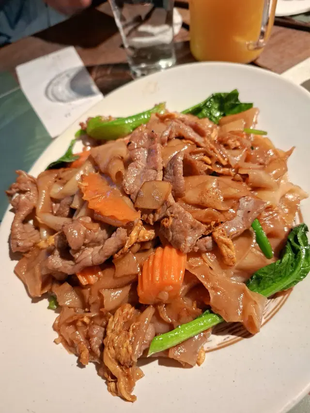 泰式蝦炒金邊粉金邊粉賣相好靚。有幾隻好大隻,又煎得好香嘅蝦。金邊粉味道酸酸地,口感煙靭,好好食。
