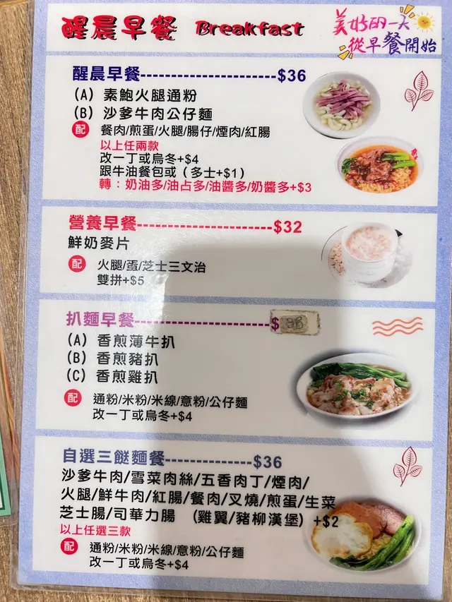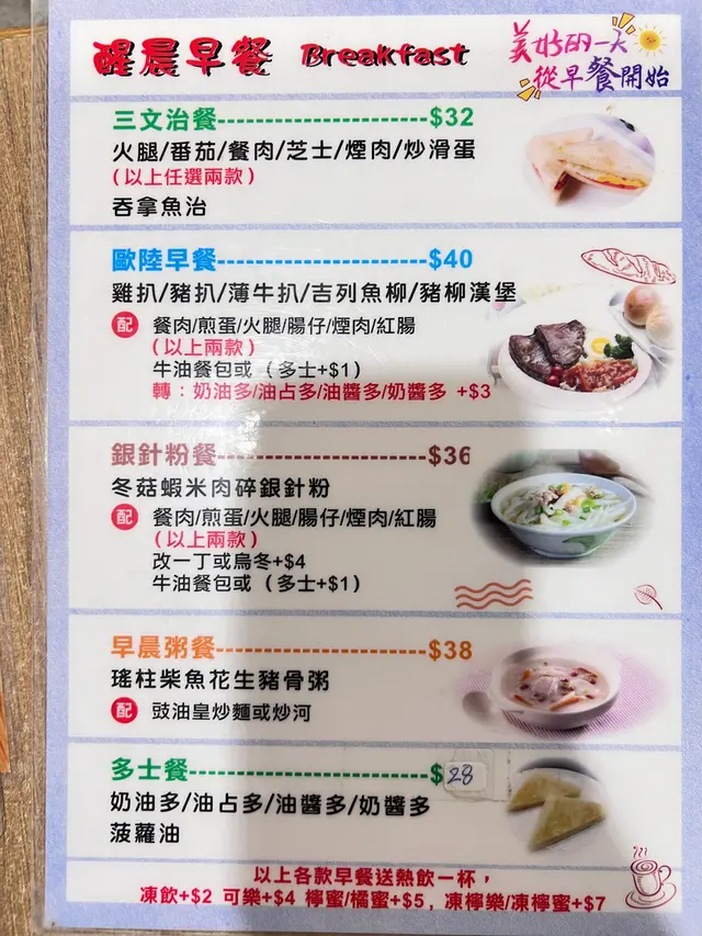 銀針粉餐配炒蛋腸仔 +牛油餐包
