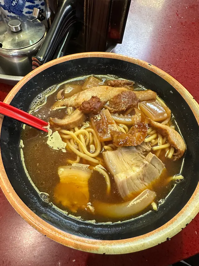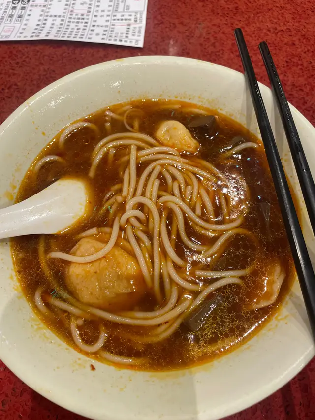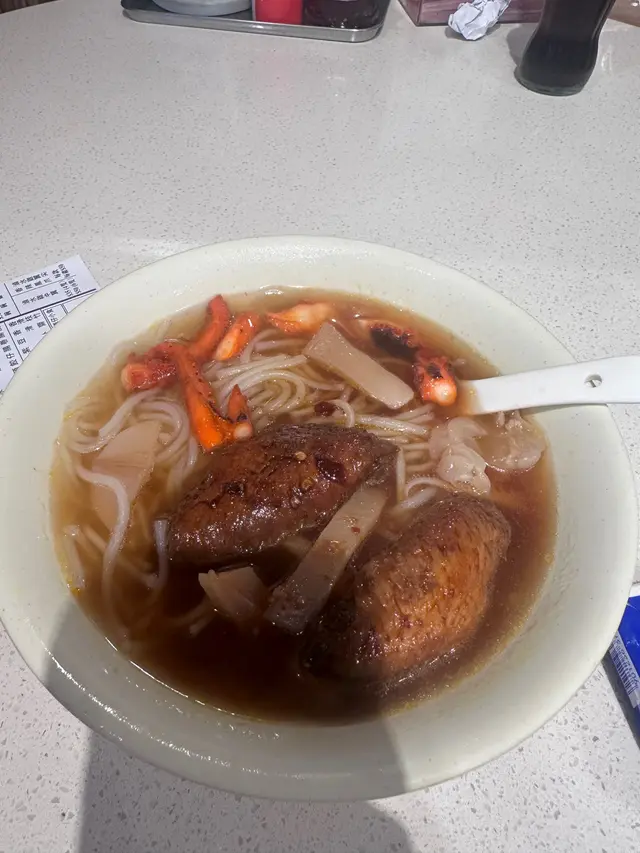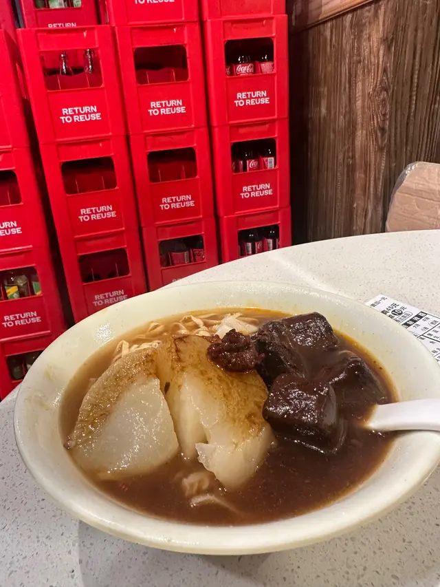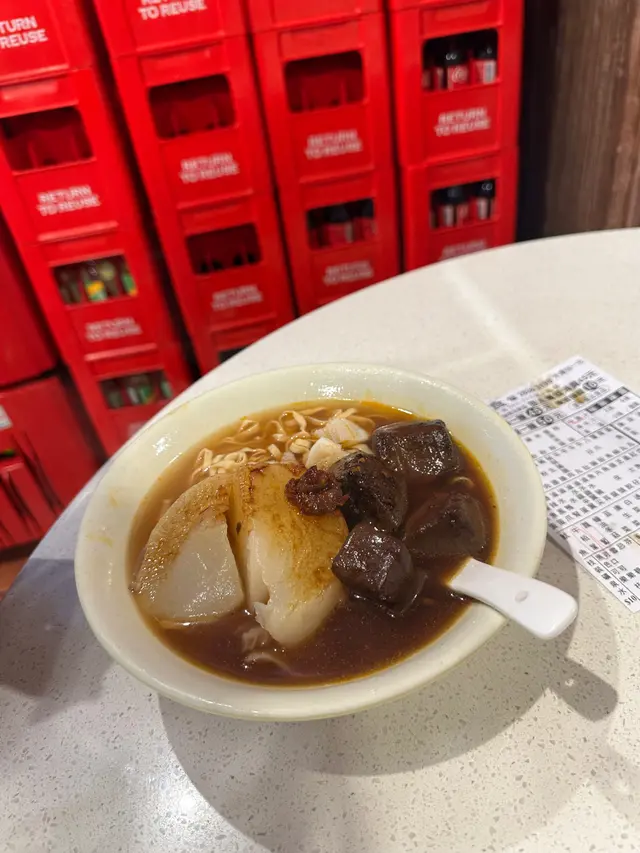 🔥瑞士汁雞翼:入味非常 肉質嫩滑瑞士汁雞翼絕對係呢碗車仔麵嘅亮點!雞翼煮得入味非常,瑞士汁嘅甜香完全滲入雞肉裡面,每一啖都充滿濃郁嘅醬香。最難得嘅係,雞翼嘅肉質依然保持嫩滑,完全唔會過老。雞翼嘅大小亦恰到好處,唔會太細隻食唔到肉,又唔會太大隻影響入味。表皮帶少少焦香,咬落去先甜後鹹,味道層次豐富。建議一定要趁熱食,感受雞翼最完美嘅狀態!🔥豬腩肉:肥瘦均勻 入口即化豬腩肉嘅表現同樣出色!切得厚薄適中,肥瘦均勻,肥肉部分入口即化,完全唔會覺得油膩;瘦肉部分則保持嫩滑,完全唔會乾柴。最正係佢哋嘅豬腩肉經過長時間炆煮,肉質軟嫩得嚟又保持到應有嘅口感。豬腩肉嘅調味亦恰到好處,帶有淡淡嘅五香同醬油香氣,同湯底嘅鮮甜形成完美配搭。每一啖都充滿肉香,絕對係食肉獸嘅最愛!…查看更多