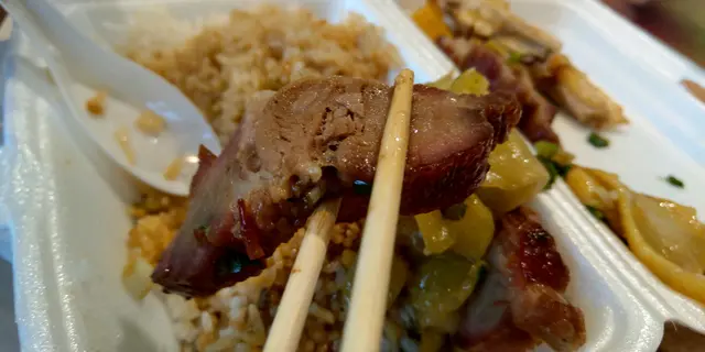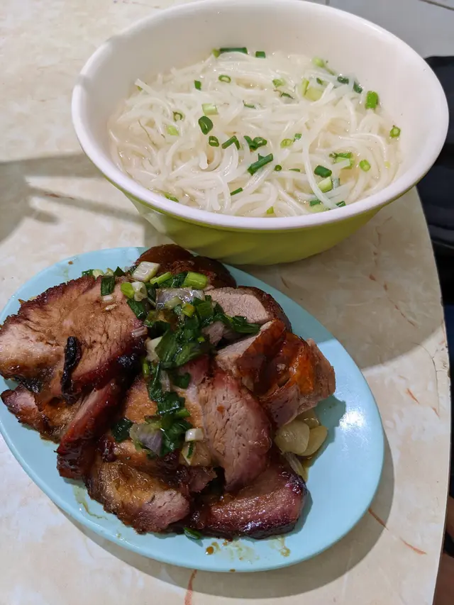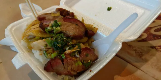 香港熟食中心嘅特色,上午必定逼滿食客,十分熱鬧!日前在社交平台看到有網民介紹上水熟食中心內嘅名店,熱愛叉燒嘅我襯去蓮塘拎眼鏡前,去新記試食個叉燒飯先!大約上午11:30已逼滿食客,人人枱上都食緊叉燒等燒味,我叫了叉燒飯,店員問一碗定一碟,食唔到太多飯,叫了一碗,而叉燒就另上,再送上一碗例湯!$40一碗叉燒飯份量都十足,一大碟叉燒,叉燒底下有鹹酸菜,上面仲有蔥油,好好味!叉燒略為鹹咗d都唔算好淋,所以一定要配飯食,個湯就淡咗d!不過去熟食中心覓食就係為咗食個氣氛,而且價錢真係好抵,值得再去!…查看更多