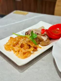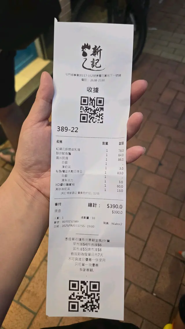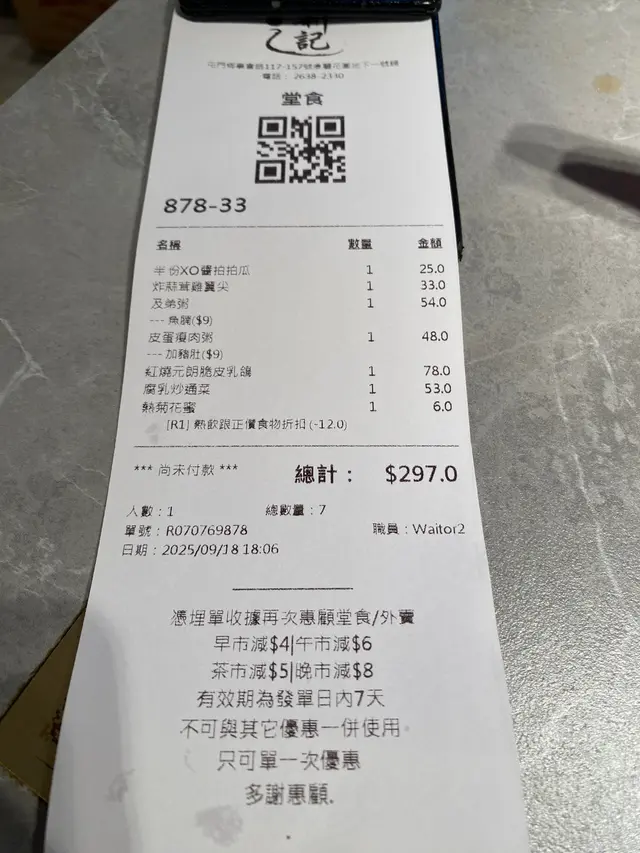 新記雞粥相信大家都耳熟能詳,今天我就一試其他小菜的味道。今天飲品選了七喜話梅柑桔冰是開胃首選,話梅味濃郁,帶有明顯的酸甜後勁,柑桔的清新香氣在喉間散發,止渴效果一流。冰涼的口感在炎熱的九月夜晚格外舒適,適合搭配主菜解膩。半份酥炸魷魚鬚份量驚喜,魷魚鬚外酥內嫩,配上濃郁的喼汁,香口惹味。雖然是半份,但分量十足,炸得恰到好處,沒有油膩感。半份XO醬炒蘿蔔糕炸至金黃,再炒,表面微焦內軟,如果喜愛較厚實口感的朋友可吃,配料包括紅椒、黃椒、青椒和洋蔥,色彩鮮艷,增添健康感。半份海蜇燻蹄的海蜇帶微辣,口感脆爽,與燻蹄的肉厚結實形成對比。燻蹄入味,肥瘦適中,海蜇微辣的調味適合喜歡重口味朋友。XO醬叉燒炒滑蛋不得不提,XO醬香濃撲鼻更是這道菜的靈魂點綴,滑蛋採用橙黃蛋黃,口感細膩,帶有蔥花提味。叉燒半肥瘦,入味十足,與滑蛋的柔滑形成完美搭配,層次感十足,值得一試。泰式鳳爪的泰式醬汁濃郁入味,帶有清新的東南亞風味,鳳爪軟糯,一口接一口停不了。配以洋蔥等配料,增強鮮味,適痘解暑及夏天享用。最後魚香茄子煲熱騰騰出爐的,醬汁濃郁,茄子外表淋漓,內裡爽口。…查看更多