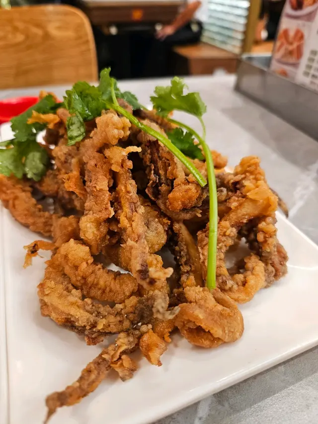 新記雞粥相信大家都耳熟能詳,今天我就一試其他小菜的味道。今天飲品選了七喜話梅柑桔冰是開胃首選,話梅味濃郁,帶有明顯的酸甜後勁,柑桔的清新香氣在喉間散發,止渴效果一流。冰涼的口感在炎熱的九月夜晚格外舒適,適合搭配主菜解膩。半份酥炸魷魚鬚份量驚喜,魷魚鬚外酥內嫩,配上濃郁的喼汁,香口惹味。雖然是半份,但分量十足,炸得恰到好處,沒有油膩感。半份XO醬炒蘿蔔糕炸至金黃,再炒,表面微焦內軟,如果喜愛較厚實口感的朋友可吃,配料包括紅椒、黃椒、青椒和洋蔥,色彩鮮艷,增添健康感。半份海蜇燻蹄的海蜇帶微辣,口感脆爽,與燻蹄的肉厚結實形成對比。燻蹄入味,肥瘦適中,海蜇微辣的調味適合喜歡重口味朋友。XO醬叉燒炒滑蛋不得不提,XO醬香濃撲鼻更是這道菜的靈魂點綴,滑蛋採用橙黃蛋黃,口感細膩,帶有蔥花提味。叉燒半肥瘦,入味十足,與滑蛋的柔滑形成完美搭配,層次感十足,值得一試。泰式鳳爪的泰式醬汁濃郁入味,帶有清新的東南亞風味,鳳爪軟糯,一口接一口停不了。配以洋蔥等配料,增強鮮味,適痘解暑及夏天享用。最後魚香茄子煲熱騰騰出爐的,醬汁濃郁,茄子外表淋漓,內裡爽口。…查看更多