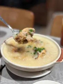 ❣︎新記雞粥❣︎喺元朗有成3️⃣0️⃣年老字號歷史,幾乎無人不識,今日同媽咪👵🏻就來到牛頭角分店試吓。店舖裝修舒適,服務態度好👍🏻最緊要係食物質素高😋👍🏻特別粥品,好食過好多粥麵店添,超推薦比大家🫶🏻❣︎香脆炸大腸❣︎(半份)$35呢到小食可以叫半份👍🏻真係好貼心💕噤樣可以叫多啲野食,又唔使浪費,炸大腸外皮炸得脆薄,外酥內軟。❣︎枸杞浸豬肝湯❣︎$59湯頭清甜鮮美,豬肝同枸杞嘅份量好多👍🏻潤肺養顏又下火。❣︎生滾泥猛粥❣︎$61⭐️必食推薦😋👍🏻泥猛粥真係好少地方食到,粥底泥猛味道超濃郁,而泥猛亦非常鮮甜嫩滑,加埋淡淡陳皮香味超正🤤❣︎茶餐❣︎$64生滾貴妃雞粥,新記出品嘅雞粥係選用鮮嫩母雞🐔再用二十種藥材烹調而成🤤粥底都係偏黃色👍🏻一睇就知雞味超濃郁,入口果然冇令人失望,粥底棉密,雞肉嫩滑😋👍🏻不愧為名物。火腿芽菜炒米粉⭐️必食推薦😋👍🏻炒得好有穫氣👍🏻米粉爽口Q彈,配料有火腿同芽菜,非常香口鮮味。❣︎蔥花蝦米腸粉❣︎$27腸粉軟滑,加埋蔥花同蝦米嘅香氣,真係配搭食粥最佳拍擋。❣︎養顏蛋白杏仁茶❣︎$31呢個都係比較少有👍🏻杏仁茶溫潤滑順,杏味香濃。…查看更多