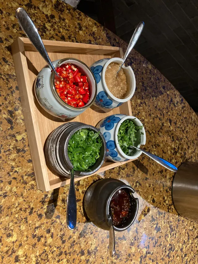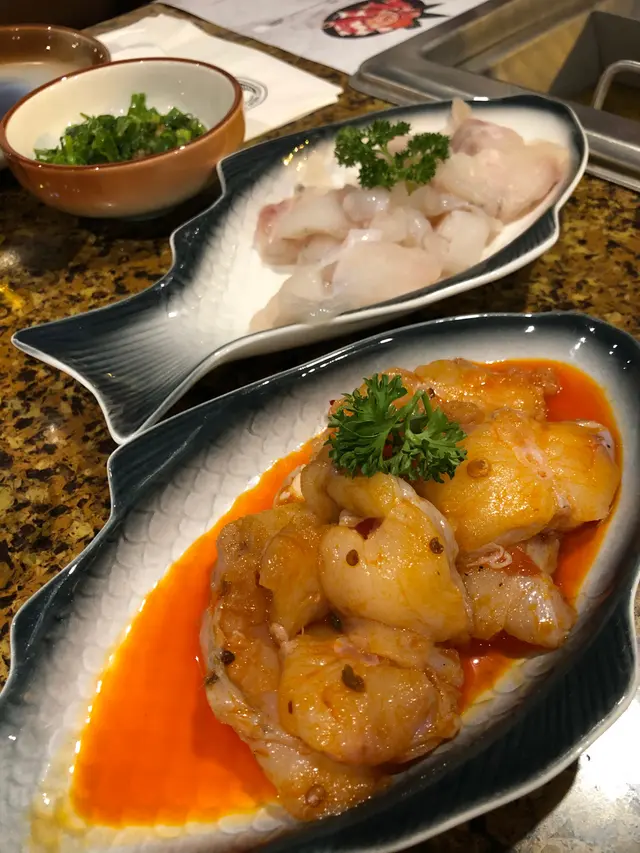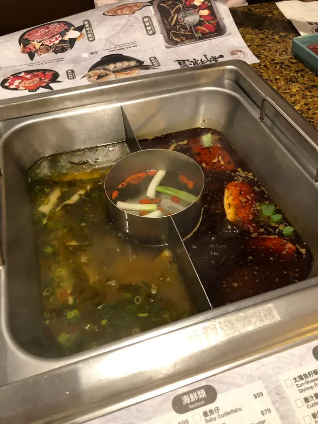 週日來到尖沙咀見到有間好超中chill, 有點像嘅fusion餐廳, 地下有有半open area 飲酒嘅位置, 原來上面係打邊爐嘅。見到Menu 嘅價錢尙算合理,便上到樓上試下邊爐。 先叫咗個鴛鴦鍋豬骨煲和酸菜煲, 另外包括兩碟辣同唔辣嘅鮟鱇魚肉,份量都很多,也是用魚形碟, 相當有雅趣。是已經給了個計時沙漏我們,3分鐘便可以食。比較特別嘅係魚肉好彈牙。小菜叫了個泡椒魚皮, 份量不算太多,但擺碟很美麗,魚皮很爽口。再叫了個勁少餐廳有的牛骨髓, 湯海鮮酸菜魚酸菜湯底下面,很鮮甜又滑。滑豆腐是並非百福豆腐,而是很有豆味的傳統滑豆腐。叫了碟精選肥牛,很厚身,不會鞋都唔會肥。日本一口牛好正, 有牛味。鮮蝦雲吞,新鮮爽口又彈牙。值得一題係,加$18有得任飲薏米水或者檸檬茶。 唔甜仲好fresh,降火又消滯間餐廳係尖沙咀, location,餐廳舒服程度,加食物味道及價錢, 值得一試。…查看更多