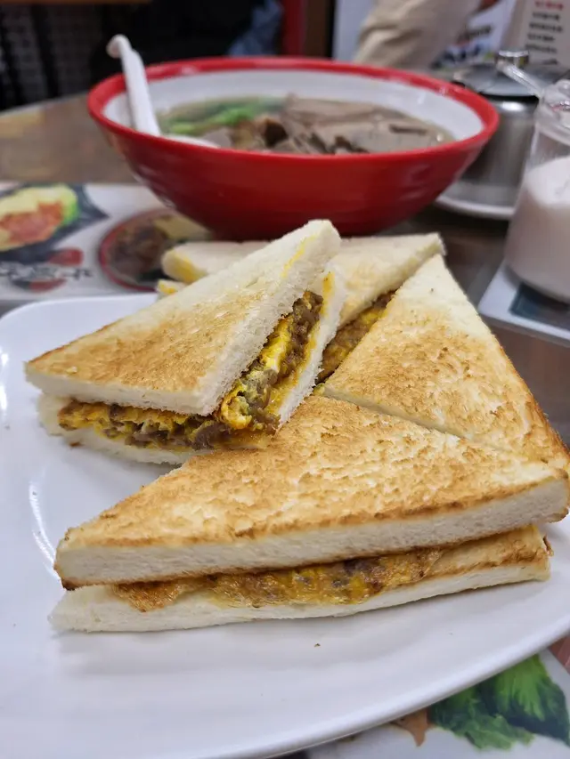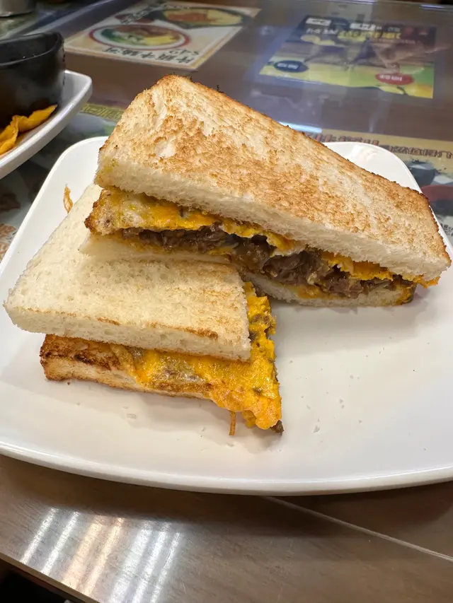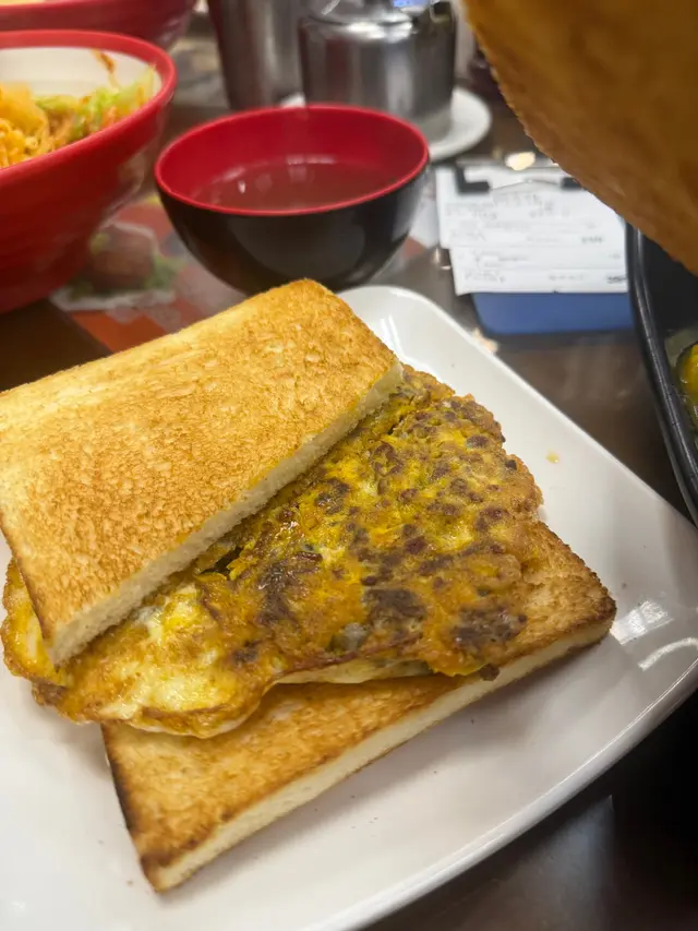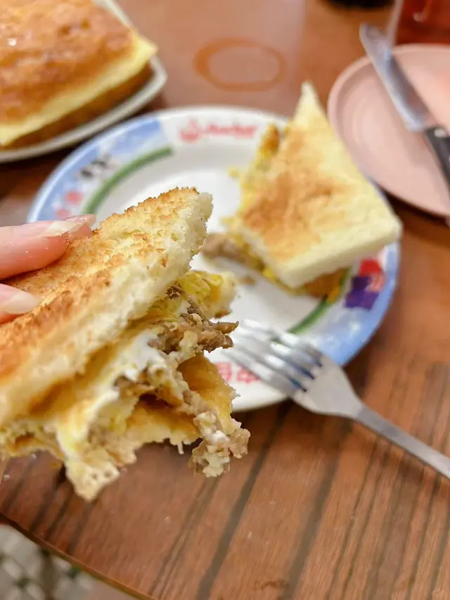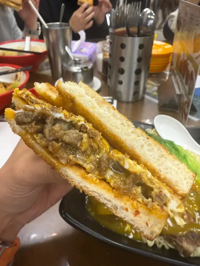 要點佢哋個「招牌蛋牛治烘底」!成件事簡直係藝術啊 —— 滑潺潺嘅炒蛋夾住厚切牛肉,兩者味覺撞出火花,再襯埋烘到金黃香脆、邊位微微焦香但完全唔油膩嘅吐司,每啖咬落去都聽到「喀嚓」聲,幸福感爆棚!至於西多士就見仁見智啦~呢度嘅西多士面包體特別薄身,炸完外層金脆但內裡軟綿!黃油同蜂蜜糖漿擺喺隔離自己落,鐘意濃甜定輕盈口感都隨你話事~夏天朝早黎嘅話,必配一杯凍奶茶!茶味濃郁帶甘,奶味順滑唔膩,再撈多撈冰鎮過嘅紅豆冰,熱辣辣嘅天氣即刻涼浸浸~呢間小店雖然環境簡樸,但每一樣食物都充滿住用心查看更多