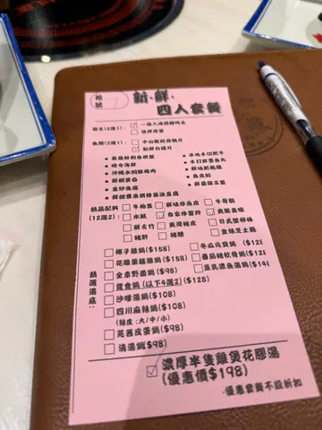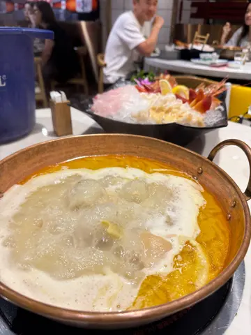 [新鮮圍煮🥘].作為黃埔地膽😎🥰冇理由唔推薦屋企附近餐廳🍴位於聚寶坊地下的新鮮圍煮深受街坊歡迎有咩甘吸引🤩?.今次試左招牌🌟金裝套餐🌟真心高質with性價比🤑💰由湯底到配料都盡顯心思食到勁飽🤰🏼🫃🫄.湯底: 🌟招牌花膠濃雞湯鍋 🥘一上桌已經聞到濃郁香氣♨️♨️湯底用上大量花膠 老雞🐣同金華火腿熬製湯色金黃透亮 入口膠質感滿滿花膠超巨型 厚身軟糯 雞肉嫩滑唔柴飲一碗湯係唔夠架🥣要飲兩碗🤣🤣飲完已經覺得滋補到不得了~✨.🌟海鮮刺身拼盤🦐🐟🌊有加拿大🇨🇦象拔蚌刺身,帶子,海虎蝦🦐好豐富呀全部都好新鮮甜美 完全冇雪藏味🥰🥰擺盤靚靚 啱晒打卡📸 .🌟手切本地肥牛 🥩 打邊爐當然唔少得肥牛全部有靚靚雪花❄️ 肥瘦分明肉質鮮嫩 牛味濃郁 正👍🏿.🌟四寶丸分別有蝦丸,墨丸,貢丸,芝士鮮牛丸🧀🥩 全部都係手打㗎口感特別彈牙🦷.🌟自選6款火鍋配料🍲有太多嘢可以揀啦。。。我揀咗🔹魚腐🥰🥰🔹炸黑毛豬午餐肉😛😛😛🔹豬肝😎😎🔹冰豆腐🤤🤤🔹響鈴🤗🤗🔹魚皮🤭🤭.🌟 時令蔬菜🥬新鮮爽脆🤗吸收湯底精華後更加清甜.食埋個🌟淮山麵就真係飽到上心口啦🫃🫄🤰🏼.大推薦捱埋個巨大手打香水檸檬真係超超超超超大杯.食咗咁多嘢,每人都係$400多啲咋‼️‼️👀👀👀餐廳環境寬敞 坐得舒服😌食完唔會成身油煙味店員服務貼心 會主動加湯同介紹食法值得比Like ❤️.@market_hot_pot.wp📍紅磡黃埔天地聚寶坊(第11期)地下G26號舖…查看更多