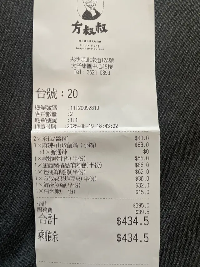 方叔叔重慶老火鍋 (太子集團中心) (尖沙咀) 網上訂座即賺Rice Dollars 網址: https://s.openrice.com/QrbS0bxuB00 地址: 香港尖沙咀北京道12A號太子集團中心19樓 電話: +852 36210893