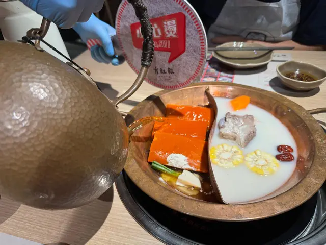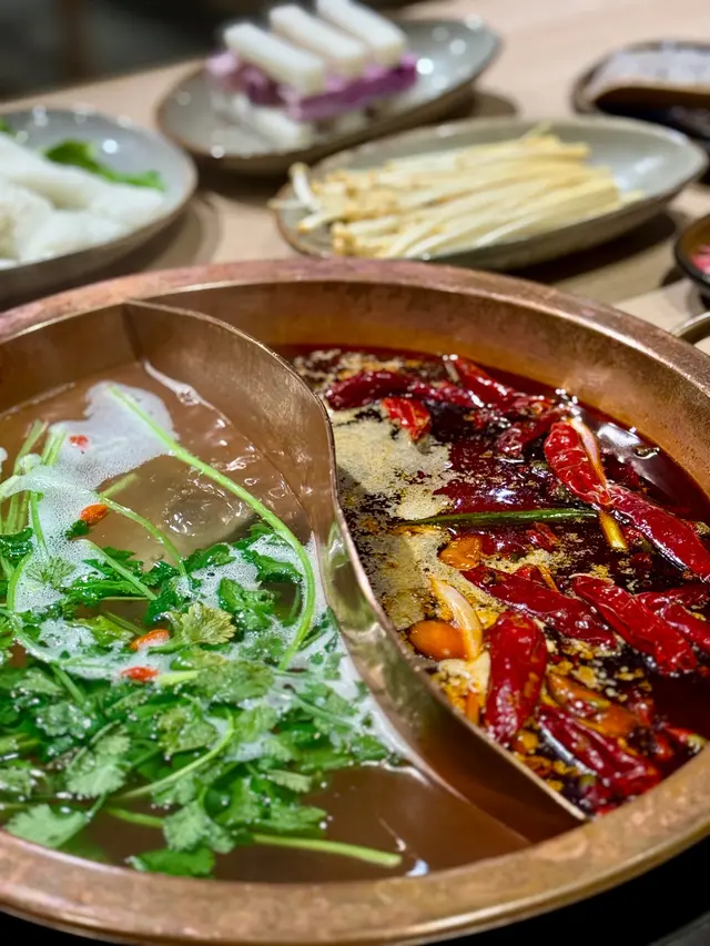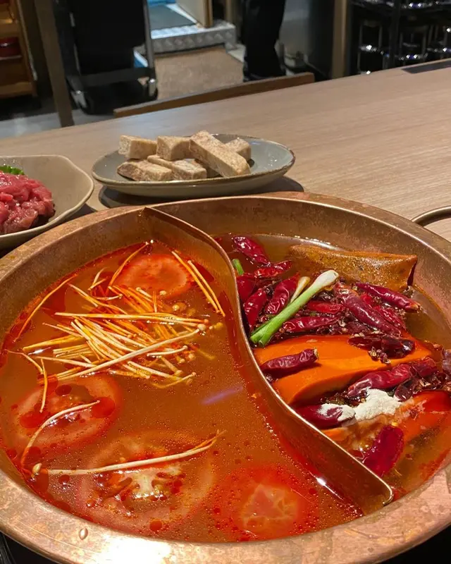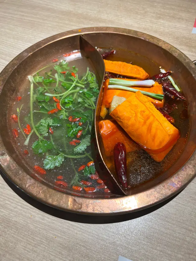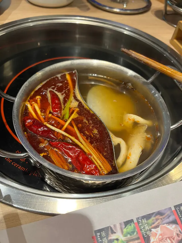 午餐點了個一人套餐,份量還可以,我還加了個黃喉、丸子。但因為是鴛鴦鍋,鍋裡太小了😩火都不能開大一點點說實話,味道還可以但是完全不辣😂相對於重慶那邊,應該是微微辣吧🤣🙌🏻我找機會吃九宮格看看會不會辣一點🫣服務嘛…不會很熱情,但又會及時收拾東西,挺好的。#FoodieLife #ilovefood #DiscoverMore #香港探店 …查看更多