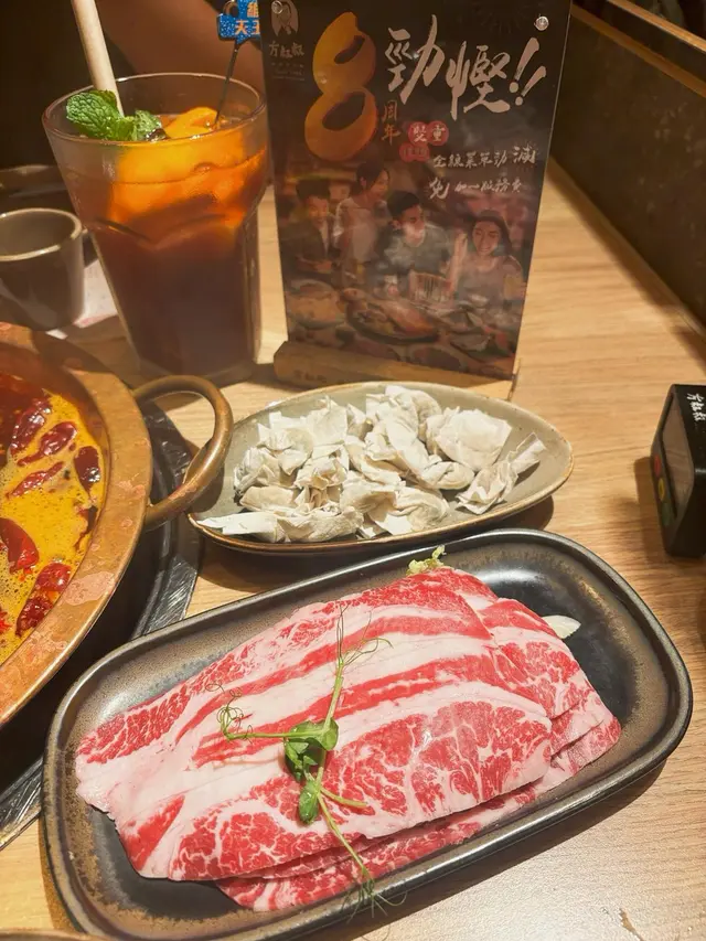 見到有好抵優惠,今晚即刻去方叔叔打邊爐😆 依家做緊八周年優惠,全日都唔收加一,唔怪得咁多人食一入座就送糖水首先揀咗個麻辣+皮蛋香菜鍋湯底,好鍾意依間嘅麻辣味,辣得好過癮🌶️今次試咗好多樣菜,款款都好高質有驚喜!嫩嫩嫩牛肉(半份)唐生菜(半份)紅糖爆漿糍粑(半份)手打墨魚滑(半份)美國Prime特級牛胸腹(半份)韭菜豬肉水餃(一份)稻庭烏冬(一份)鮮竹笙(半份)美國Prime特級牛小排(半份)鮮龍躉片(半份)霞浦海帶苗(一份)全部牛肉都好正,好嫩滑爽口 質素高👍 另外素菜推薦海帶苗,爽口新鮮😋😋 甜品就好推薦紅糖糍粑,熱辣辣流心紅糖好香甜🥰好滿足,下次一定會再嚟食🤩查看更多