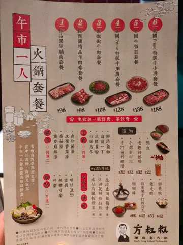 話說小弟早前同朋友去銅鑼灣行街 經過渣甸中心見到有間方叔叔重慶老火鍋 就抱住好奇嘅心態上門拜訪方叔叔😆😆去到舖頭發現佢哋午市有套餐 對於趕時間嘅朋友講價錢又實惠 又滿足飽肚 不過我當日時間充裕就慢慢睇單點嘢食 而且有好多疑問都有問當值員工 雖然見唔到方叔叔本人 不過樓面有兩位女士服務得非常有禮 又有耐性 主動同我哋推介一啲菜式 另外又幫我哋落鮮鴨血同蝦滑 雖然我哋嗰日叫嘅嘢食唔多 不過就享受到帝王式服務 埋單嗰時 佢哋亦都有推介會員優惠 令到我覺得原來係打邊爐性價比都可以咁高 我相信日後都會再黎本店用餐👍🏻👍🏻👍🏻 …查看更多