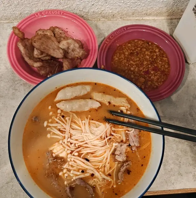 , 好快揀左食咩之後, 就開始放心! 當日兩個後生仔睇鋪+煮埋, 做同客人熱情溝通, 上左面之後, 由於湯底太正, 我埋頭苦幹飲緊d 湯! 店員竟然請我地食零食
