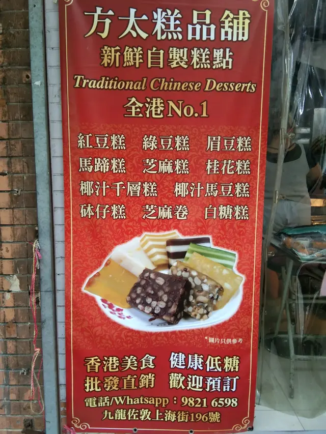 -{佐敦傳統糕品餅店}除左光酥餅之外仲有其他傳統糕點都鐘意食🤭經過佐敦就黎左排隊點知一排就1.5鐘😰🤤糕品🤤 ($20/3)以下順序排最推薦嘅糕點😛芝麻糕: 後勁凌厲!!芝麻沙沙嘅感覺同味道愈咬愈出😍椰汁綠豆糕: 綠豆味比想像中出😍椰汁味亦有👻係煙韌嘅感覺椰汁千層糕: 就係椰汁加片糖嘅味道😂同綠豆糕一樣咁煙靭☺️椰汁紅豆糕: 紅豆濃過椰汁好多 仲有啲沙沙嘅質感😚不過綠豆糕煙韌啲🤭馬碲糕: 馬碲粒分佈得好平均🥳咬落爽口!但冇咁驚喜蓮子桂花糕: 桂花味相對淡👀比較上實淨 中間有啲白果我就麻麻地😂👖褲評: 7.8/10依個價錢要等咁耐要諗下先🥺下次經過唔使排先會回購😂性價比: 8/10服務: 7/10環境: nil🚩 方太糕品舖 🚩地址: 佐敦上海街196號地下…查看更多