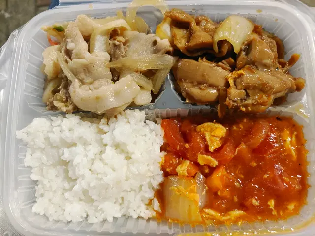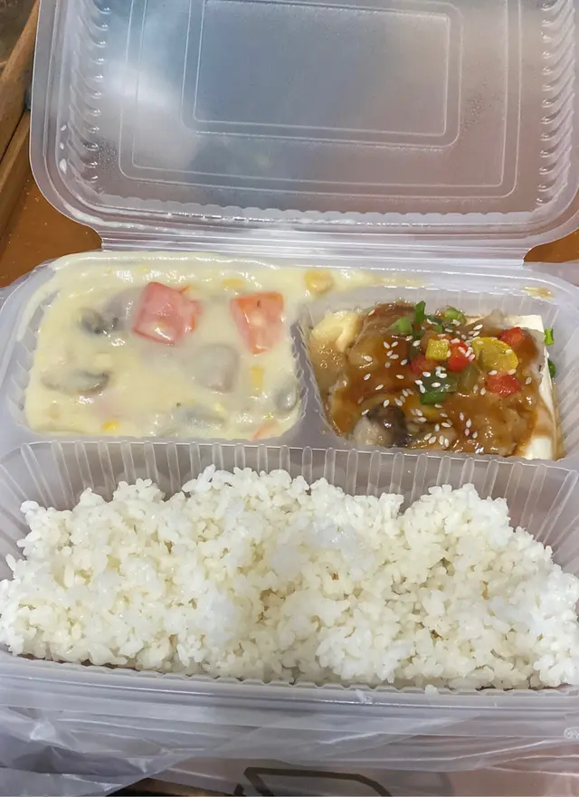 生薑豚肉+照燒雞+番茄蛋,少飯