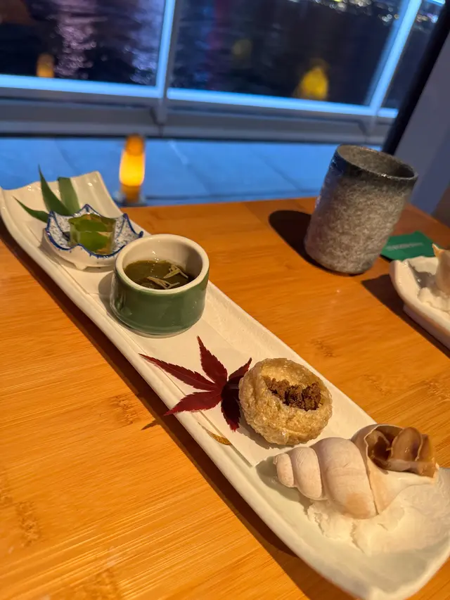 一入去呢間餐廳就感受到高級日式餐廳嘅靜謐氛圍,最正係坐窗邊望出去就係無敵大海景,食住和牛睇住維港,真係寫意到不得了。今日分別試咗兩個 set,同樣都係咁出色!🍽 日山.和牛盛宴 呢個 set 真係牛魔王必食,嚴選咗七個唔同部位嘅A5和牛:腰脊、肩胛、牛柳、牛肋、內裙、西冷、肉眼,每款都有唔同嘅油花分佈同口感,牛味濃郁但唔會太 heavy。😋 A5和牛肩胛刺身 ~ 呢道好有驚喜,肩胛位油花分佈平均,切得薄薄地,幾乎入口即溶。上面鋪咗一片片黑松露,牛脂嘅甘香同黑松露嘅濃郁味道互相提升,簡直係奢華嘅享受!😋 A5和牛腰脊紫菜脆餅 ~ 感覺係高級 fusion 之作,底層係香脆紫菜脆片,中間鋪咗微炙嘅A5和牛腰脊粒,油脂香濃但唔膩。最上面鋪咗海膽,鮮甜滑溜,入口即溶,食落去層次感好豐富!🍽 日山.松 呢個 set 就偏向海鮮,有刺身、清酒蒸鱈場蟹等等,啱晒鍾意清新口味嘅人。😋 日山嘅壽喜燒真係無得頂!肉質嫩滑,油花融化得啱啱好,加埋生蛋汁一齊食,口感更加滑溜,牛肉嘅香氣同蛋香嘅融合,幸福感滿滿!配埋支自家製日山 HARU 清酒,微甘口,啱晒慢慢嘆住食 ❤️…查看更多