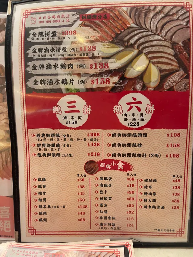 滷水拼 elaine20326等級42021-11-19143 瀏覽 關注 日日香鵝肉飯店 地址: 銅鑼灣軒尼詩道500號希慎廣場11樓11號舖電話: 66891770=====================潮州人由細就食老水大,身上流住老水血,過時過節返屋企食飯,家中長輩亦都會買老味比我地食。去左food court 搵食,因為選擇種類多,搵到位後即分頭行事排隊買野食。大堆頭乜都有d ,都要點6寶才滿足多元化,$128 滷水拼有紅腸,豬腩,豬耳,豆卜,豬大腸同滷水蛋呢碟份量勉強足夠2人分啦,因為我唔太食飯,怕飯氣攻心,而同事又話減肥,原本想要小飯但又驚唔夠,咪索性叫一碟滷水來share 豬腩比較有咬口,腍身d會比較得我心。豆卜索汁好食,紅腸豬耳雞蛋呢類吸汁架食物,遇上滷水汁無得彈。我地都好好再點多條滷水油菜架。…查看更多+ 5以上食評乃用戶個人意見 , 並不代表OpenRice之觀點。讚好分享滷水拼 日日香鵝肉飯店 (希慎廣場) https://s.openrice.com/QrbT0UQP000檢舉 張貼 評分4味道3環境4服務4衛生3抵食用餐途徑堂食