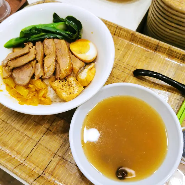 非物質文化遺產-滷水獅頭鵝 longlx等級42021-11-29254 瀏覽 關注 【日日香鵝肉飯店】2003年在澄海創立,主打滷水獅頭鵝及潮式滷水美食。2017年在世界廚王爭霸賽中獲金獎,2018入選區級非物質文化遺產。2019年登陸香港,至今紅磡、銅鑼灣、中環、觀塘、九龍灣、北角、屯門、元朗共設8家分店。銅鑼灣分店位於希慎廣場FOODCOURT,有別於傳統字號老,品牌棄用千年滷水膽,改用每日新調的草本滷水料,味道鹹中帶甜富滷水藥材味,感覺較清香淡雅,不油膩。金牌滷水鵝片飯 ($75)以獅頭鵝製作,鵝味特別濃。鵝片切得厚薄適中,無骨啖啖肉最合意。沾些蒜泥白醋汁,除去油脂感更顯鵝肉清香。滷水汁惹味而不會過濃,拌飯吃剛好。招牌滷水鵝肉飯 ($64)鵝肉飯配料有半只鵝蛋、豬肉條、甜酸菜、豆卜、時蔬,食材豐富,擺盤賣相吸引。甜酸菜色澤金黃,口感爽脆,咸酸適中,非常醒胃。套餐還附上以蓮藕及茶樹菇煲成的足料老火湯, 更添滋潤。滷水雙拼飯 ($75) 鵝片 (+$20)套餐飯可免費轉成粉,有米粉、河粉、瀨粉可選,更有彈性。滷水雙拼點鵝腸和鵝片,鵝腸雖較幼但吃下爽脆鮮味無腥,尚算不俗。…查看更多+ 5以上食評乃用戶個人意見 , 並不代表OpenRice之觀點。讚好分享非物質文化遺產-滷水獅頭鵝 日日香鵝肉飯店 (希慎廣場) https://s.openrice.com/QrbT0yzXG00檢舉 張貼 評分4味道4環境3服務4衛生4抵食用餐途徑堂食
