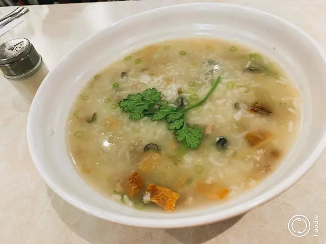 今天要去眾安街見客,我是做保險的,上了去千色三樓,見到一間好光猛嘅冰室,見1:30都唔使排隊,咁就入去食個lunch,一邊等客人啦,見到午餐有蠔仔肉碎粥,即刻忍唔住叫,我琴晚飲醉,而家仲hangover緊,食返d湯飯就最好,碗粥到了,超熱,然後我落左勁多胡椒粉,好味,連湯都有蠔味,唔知佢點先可以做到,我本人覺得連九龍城好出名那一間都沒有這種味道,有下次,啱啱食完,我客人到了,呢個時候係叫野飲,我叫左杯凍檸茶,茶底唔得,唔香濃,檸檬有成5大片,有時太多唔係一定好㗎,冰又多,點飲姐,我客人只係飲左熱咖啡,佢話好得,好滑,不過呢間冰室我比佢嘅分數都高,因為我中意佢地出面有個花園,可以比我食支煙,希望佢地可以keep住食物水準,等我下次再食過查看更多