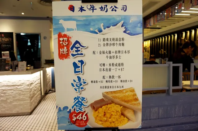 之前幫襯了這一間餐廳確實不錯,今次要再來覆桌了,今次食了一個金牌特餐,羅宋湯通粉,迷你奶油豬,日本煎蛋,凍奶茶,先講羅宋湯通粉,好濃味,牛味好重,唔會好水,真係讚不絕口,而奶油包外面好脆,麵包好新鮮食落去感覺非常脆口,熱辣辣好味,凍奶茶好滑,但係我覺得佢茶味太濃,淡返少少仲好,𠄘為46蚊,幸好六點前沒有加一,聽說因為市道唔好,好多商場嘅食肆夜晚都有折頭,唔知依間日本牛奶公司有冇,我見到佢夜晚有鐵板牛扒餐,跟餐好似好多嘢食,好抵食,下次試吓等我再報告一下查看更多