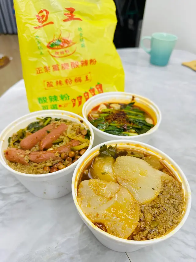 今晚嚟到旺角旦王食晚餐,鋪頭細細間但好有氣氛,仲有立食位,好適合落班後快手食一碗熱辣辣嘅酸辣粉。呢度環境唔複雜,但食物真係有驚喜!招牌酸辣粉呢碗酸辣粉真係必試,湯底香濃又帶酸辣感,辣度可以自選,我今次揀咗小辣,辣得啱啱好唔會太嗆,薯粉煙韌彈牙,配埋炸菜、花生同芫荽,味道層次豐富,食落暖胃又開胃,真係食到停唔到口🤤。招牌大腸大腸洗得好乾淨,冇怪味,質感軟糯又帶啲微微脆香,尤其配埋麻辣味,香辣入味,完全遮蓋咗腸嘅本味,好適合配酒或者落飯,好正!👍小食三拼小食三拼包括腸粉、魚蛋同燒賣,腸粉滑溜又有彈性,魚蛋係陳皮魚蛋,味道淡而不失鮮味,燒賣煙韌有口感,三款小食配埋一齊食,味道配搭好均衡,啱晒鍾意多款口感嘅朋友。…查看更多