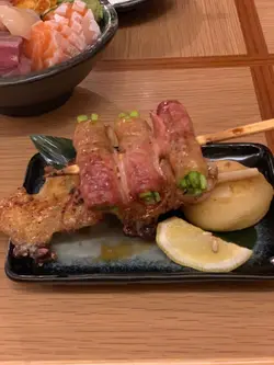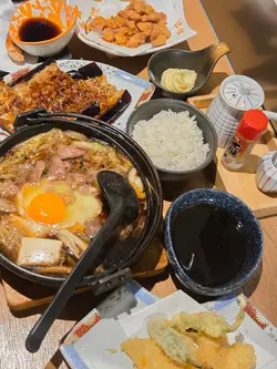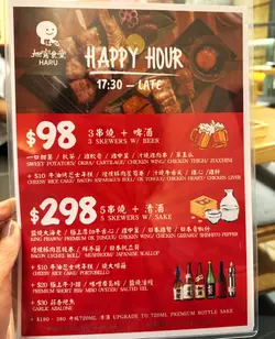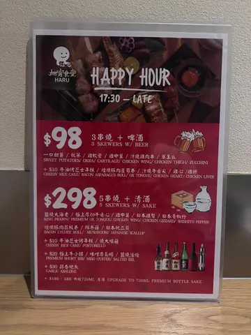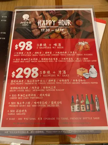 在西環剛找到一間甚有品味的日式居酒屋 [旭宵食堂] 餐廳主打日式燒物, 炸物, 鍋物, 卷物.........放工後去. 剛好 Happy Hour 時段, 客人多在飲酒言歡. 歡樂時光由 17:30 - Late, 備有串燒 + 清酒, 啤酒, 套餐, 岩我們啊 !放式廚房及吧台, 適合三五知己圍坐 !餐廳燈光柔和, 感覺舒適. 我們兩人選擇方桌座位. 又即點了個 串燒 + 啤酒 套餐. 串燒 11 款可以選 3款. 點餐極輕鬆, 除了餐牌, 又可以參看牆上廚師推介, 今晚天氣涼, 大家喜歡來個暖笠笠的 [牛肉壽喜燒] 套餐, 有齊湯, 白飯及甜品. 師傅好勤快, 食物即燒即上枱, Happy Hour set 送到, 燒物 3 款, 自選了 雞中翼, 汁燒雞肉串, 煙燻豚肉蘆筍卷. 串燒燒得好平均, 熱辣辣. 汁燒雞肉串, 雞肉軟滑, 好食, 照燒汁調味正. 雞中翼, 一串兩件, 外皮燒得香脆, 肉質嫩滑多汁, 非常香口. 煙燻豚肉蘆筍卷, 薄豚肉包住 BB蘆筍, 豚肉經煙燻香氣濃, 卷內的BB蘆筍爽脆鮮嫩, 口感清甜, 啖啖都是精品, 佐酒一流. 牛肉壽喜燒, 服務員把套餐食材, 牛小排, 珍珠米飯, 日本蛋一一送上, 排列整齊, 好吸引. 鐵鍋內材料滿滿, 連爐具上枱, 頂級牛小排, 牛肉大大片, 份量足, 色澤嫩紅, 脂肪比較少, 先煮頂級牛小排, 經加熱後溶出油脂, 香氣上升.牛肉香滑, 牛味濃, 入口幼軟鬆化, 味道不俗.混上蛋漿, 特別香滑. 伴菜也不少, 日本粉絲, 冬菇, 紹菜, 香菌, 豆腐等, 材料豐盛. 吸入了壽喜燒汁, 好好味. 把什菜泮上 珍珠米飯, 又暖又溫飽. 再飲口 味噌湯, 更暖胃.套餐送甜品: 日本麻糬, 香滑煙韌. 店員介紹, 點讚有禮. 真驚喜.....送給我們柚子雪葩: 柚子內滿載著雪葩, 入口帶點點酸酸的柚子味, 好好食. 食材款式多, 串燒即叫即制, 鍋物用料足, 令人吃得回味! 居酒屋環境理想, 價錢合理.…查看更多