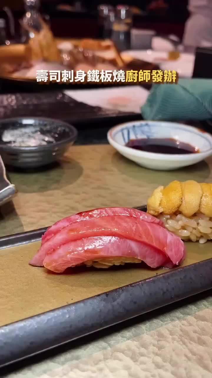 這間餐廳精心設計的套餐, 可品嘗新鮮魚生, 更可感受鐵板的美食, 體驗一場跨越溫度的味覺之旅。套餐以刺身作為優雅的開場。左口魚薄切配馬糞海胆是視覺與味覺的雙重藝術——透薄的左口魚肉質爽脆,清雅淡甜,與頂級馬糞海胆那濃郁甘醇、入口即化的澎湃鮮味形成絕妙對比。而春魚則以其鮮明的銀身魚風味,帶著微妙的油脂與恰到好處的酸桔點綴,展現了時令的獨有魅力。緊接而來的壽司四貫:· 間八(琥珀魚)肉質緊實,口感爽朗,鮮味純淨。· 秋刀魚肥美豐腴,其獨特的風味經過師傅巧手處理,僅以一抹醬油和薑蔥提鮮,是秋季最迷人的滋味。· 三層拖羅無疑是高潮所在,從赤身的濃郁魚味,到中腹的均衡油脂,再到大腹如雪花般在舌尖融化的極致甘香,層層遞進,將味蕾的享受推向頂峰。· 馬糞海膽壽司則為這海之樂章畫下圓滿句點,海胆的極致鮮甜與醋飯的溫潤酸香完美融合。鐵板的炙熱舞曲鐵板馬友魚與大蝦,盡顯功架。馬友魚皮煎得金黃薄脆,魚肉卻保持嫩滑;大蝦彈牙爽口,充滿焦香。燒鮑魚配鮑魚肝醬是匠心之作。鮑魚鮮嫩彈牙,而以其內臟製成的墨綠醬汁,濃郁鮮美中帶有獨特的海洋風味,與鮑魚肉是絕配。鵝肝配多士外表煎得焦香,內裡幼滑如絲,油脂在口中爆發,搭配酥脆的多士與解膩的醬汁。美國特級牛肉薄燒、薄切的牛肉在鐵板上快速捲起,包裹著香蔥、蒜片,肉香、油香與辛香在口中交織,滋味豐富。鐵板炒飯,米飯與雞蛋、醬油炒出鑊氣十足的香氣。伴以簡單的炒雜菜和一碗鮮甜的味噌蝦湯,整套盛宴得以圓滿。最後,綠茶紅豆奶凍作為終曲。奶凍質感細膩滑順,綠茶的微苦回甘與紅豆的綿密清甜平衡得恰到好處。令外「10月壽星」的客人,晚餐時段享有「全單食物八折」優惠(飲品和酒類不包含在內)。必須至少「兩位或以上顧客」同行,且其中一人為10月壽星。…查看更多