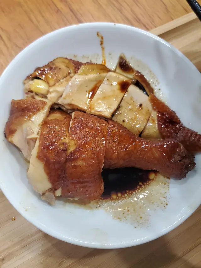 食落就更加出色,夠滑而且雞味夠濃,如果重囗味既人加埋佢地既雞汁+薑蓉又有另一番風味!最後因為太好味2個人都食左大半隻😂…查看更多