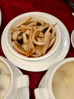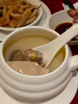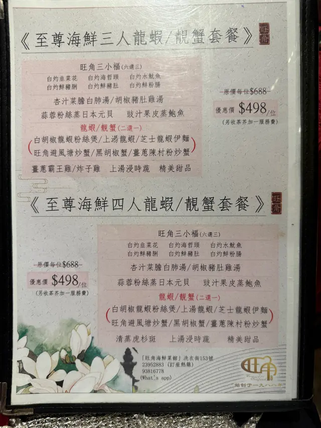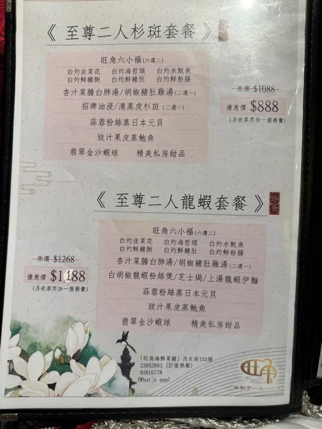 朋友話帶我食海鮮!食我最愛的瀨尿蝦!所以叫一個【至尊瀨尿蝦二人套餐】‼️咩都試少少!滿足我的小鳥胃😋📌前菜白灼海蜇及白灼魷魚均用豉油加點麻油調味可以釋出它們的鮮味👍🏻📌湯品▪️杏汁菜膽白肺湯融合了杏仁的清香、豬肺的鮮甜,以及菜乾的甘甜,口感細膩,帶有溫潤的滋補感。▪️胡椒豬肚雞湯胡椒的香味很暖胃👍🏻湯頭濃郁、很滋補養顏!📌椒鹽瀨尿蝦職員新鮮撈起後立刻拎去廚房烹調🤤職員細心為我們剪開瀨尿蝦的殼,肉質鮮甜啖啖肉!配上椒鹽的做法味道很惹味🤤📌蒜茸粉絲蒸元貝大大隻的元貝相當厚肉!而粉絲是主角吸收了醬汁的精華吃超好味🤤📌豉汁蒸大連鮑大大隻的鮑魚口感很彈牙,配上豉汁食別有一番風味。📌豉汁炒靚蜆蜆肉飽滿,豉汁很有港式風味很地道👍🏻📌翡翠金沙蝦球這款相當好味!鹹蛋黃醬包裹着整個蝦球!味道相當濃郁,炸皮又薄而蝦球很大塊👍🏻…查看更多