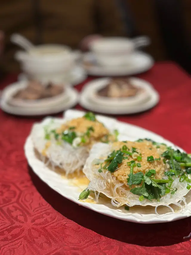 我哋七個人食生日晚飯,叫咗人套餐每位488 ,另加咗三個餸俾唔食海鮮的小朋友。最驚喜係杏汁豬肺湯,好香杏仁味,豬肺好滑👍六小碟外貌不揚,但各有風味,韭菜看似簡單,但好嫩好爽,小小的海蜇頭好爽好特別👍白胡椒蟹煲好香,粉絲朔晒蟹味,淡淡的辣味帶出鮮和惹味的平衡👍清蒸海上鮮,火候剛好,僅僅熟,好滑👍金沙蝦球,鹹蛋黃完全覆蓋,好邪惡,炸漿稍厚蒜蓉粉絲蒸帶子,好大隻,但蒸得過咗火,稍老,好在蒜蓉同粉絲好味鮑魚不過不失,勝在夠大隻另外叫的咕嚕肉,小炒王都好好味。仲送咗碟炒蜆俾我哋