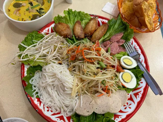 好後悔冇睇食評就衝咗入去街頭呢一間泰國菜館, 因為佢嘅門口擺咗好多泰國食品出嚟, 色彩繽紛好吸引, 畀佢引咗入去. 一坐低發現就發現有一股奇怪嘅氣味. 然後兩個人點咗一個湯, 三個菜, 兩款飲品, 以下逐一介紹:冬陰公湯(小)算係正常嘅蝦醬炒芥蘭冇乜蝦醬味, 芥蘭好硬亦都冇乜菜味.半隻泰式海南雞係雞髀嚟嘅, 但係都係冇乜味, 雞肉比較軟淋, 就加埋個醬都係冇乜味, 好淡口.泰式煎蠔餅同平時食開嘅潮式蠔餅有好大分別, 蠔係肥嘅, 但係同啲蛋炒埋一齊「散收收」咁, 冇鑊氣, 底下墊咗大量芽菜, 成碟味道都係淡口, 連魚露味都冇, 連個辣醬亦只係得辣味冇乜鹹味.飲品我哋點咗椰青同埋龍眼冰最正常就係飲品好失望!去九龍城諗住食正宗泰菜, 點知入到去係前所未有嘅淡口. 但係好奇怪, 雖然係淡口, 但係食埋兩杯飲品都係會覺得好口渴㗎喎, 埋單都要四五百蚊, 早知睇多幾間先坐低.另外亦都值得一提, 呢間舖頭店入面坐低嘅位置係收唔到電話嘅, 所以想即場睇食評再點嘢食就要上佢提供嘅wi-fi, 但係我就基於安全理由就冇上wi-fi所以冇喺店內睇食評就點餐, 可能係咁所以冇點中佢出色嘅嘢.…查看更多
