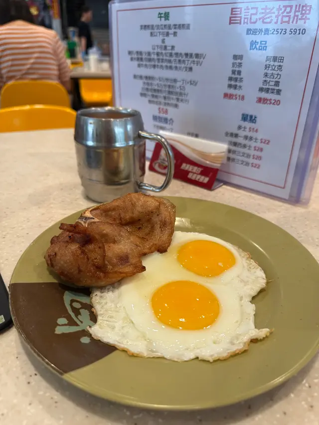 昌記茶餐廳是我從小到大的最愛,每次回想起來都讓我嘴角上揚😊。每天必點的餐蛋一丁麵和奶茶,早已成為我生活的一部分。那杯奶茶滑順得令人陶醉,茶味恰到好處,讓人每一口都想再來一口☕。餐肉煎得脆脆的,外焦內嫩,咬下去的瞬間,滿足感瞬間湧上心頭🥓。而那顆蛋,邊邊煎得剛好,不僅增加了口感的層次,還讓整碗麵的味道更加豐富🍳。每次吃完,都會覺得心滿意足,彷彿回到了童年的無憂無慮✨。昌記環境比其他茶餐廳舒服,因為樓底高和枱不是放得太近。