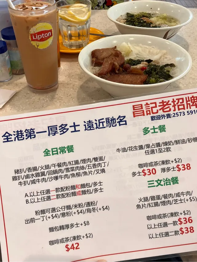昌記茶餐廳是我從小到大的最愛,每次回想起來都讓我嘴角上揚😊。每天必點的餐蛋一丁麵和奶茶,早已成為我生活的一部分。那杯奶茶滑順得令人陶醉,茶味恰到好處,讓人每一口都想再來一口☕。餐肉煎得脆脆的,外焦內嫩,咬下去的瞬間,滿足感瞬間湧上心頭🥓。而那顆蛋,邊邊煎得剛好,不僅增加了口感的層次,還讓整碗麵的味道更加豐富🍳。每次吃完,都會覺得心滿意足,彷彿回到了童年的無憂無慮✨。昌記環境比其他茶餐廳舒服,因為樓底高和枱不是放得太近。…查看更多