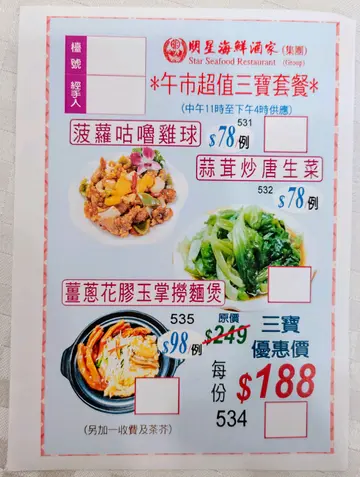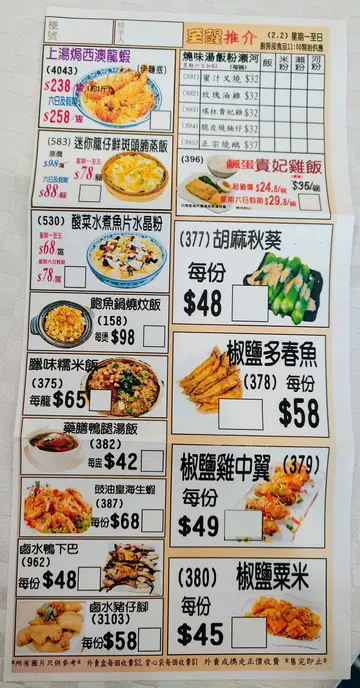 上次食小菜覺得不過不失,今次就黎飲早茶,8點幾已經座無虛席,幸好早起嘅老人家已入座,點了以下點心:1. 自選孖寶 - 豉汁蒸排骨 + 鮮蝦腸粉:質素唔差,味道適合,腸粉唔會一夾就散,蝦幾大隻又爽口,排骨都幾大粒,都係一般味道冇特別。2. 香煎鹹薄餅:賣相難有唔同,夠熱仲有點脆口又唔油膩,幾開胃。3. 妙醬蒸鳳爪:味道都係跟大眾差唔多冇特別,只係雞腳幾大隻,一碟有6-7隻,算幾多。4. 蟹籽燒賣:有四粒大大粒,比外面食還要大粒,食落去都唔粉。5. 明星鮮蝦餃:隻蝦雖然幾大,個皮厚左少少搞到咬落去太煙韌,影響口感。6. 鳳爪排骨飯:兩者都冇散叫咁大隻/粒,都係好食夠熱。7. 魚肚蝦滑雞扎:魚肚幾厚身又夠腍,蝦滑幾香幾彈牙。8. 菜苗餃:個餡冇咩味,個皮都係比較厚。基本上點心即叫即蒸,夠熱味道適中,煎物夠香口,老人家第一次黎飲早茶都讚不絕口,服務態度幾好。…查看更多