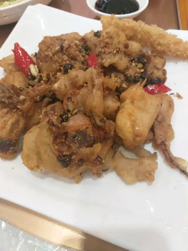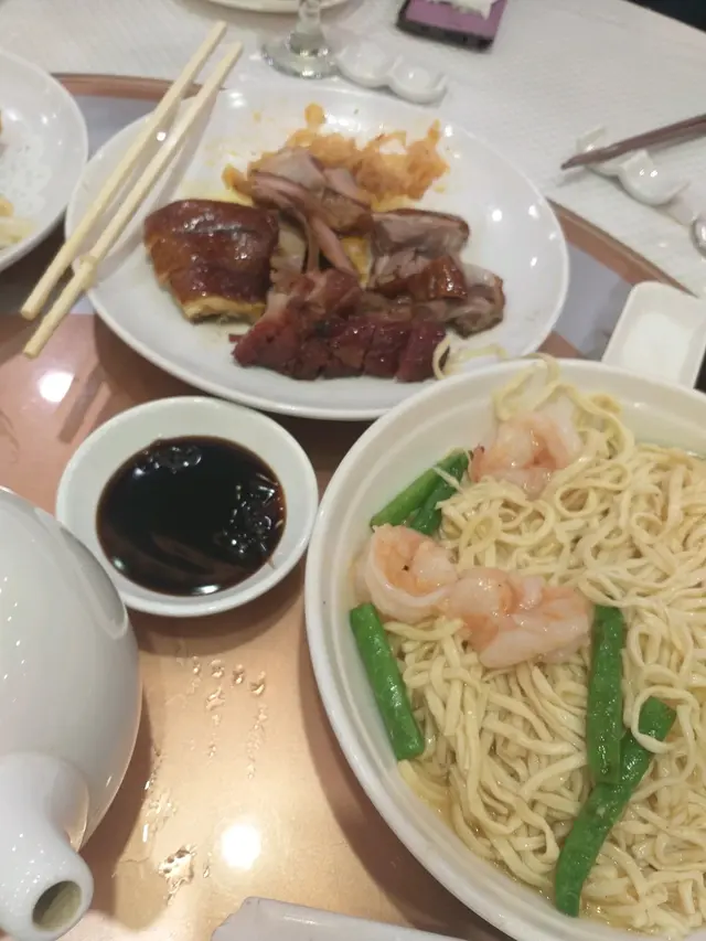 今次屋企人生日,一行9人挑選明星金閣,點了以下餸菜:半圍1. 紅運燒味拼盤:有叉燒、豉油雞及海蜇,一般燒味水準冇特別。2. 上湯焗蝦球伊麵:幾隻蝦一埋麵冇乜味,勝在夠大份,都係冇特別。3. 翡翠炒龍躉球:魚塊落重左味,好鹹!! 4. 雲耳蒸斑頭腩:幾好食,肉質滑嫩。5. 吉列炸蝦卷:脆卜卜幾好食又夠熱。6. 蟲草花野菌時菜:清清淡淡算唔錯,份量都幾多。7. 翠綠海鮮炒飯:最好食嘅一個餸,夠熱 & 夠乾身,份量至少每人有一碗。8. (加餸) 片皮鴨:包皮熱得黎,好難分開癡埋一舊,鴨皮幾脆好食。9. (加餸) 避風塘炸軟殼蟹:除左軟殼蟹仲有粟米&魷魚,上碟好大舊,原來係炸粉大過舊料,下次唔會再叫。10. 明星脆皮燒鴿:即製夠熱夠脆好好食。食物質素一般,只係鹹左少少,基本上都係好味,而且服務態度唔錯,侍應唔會應完冇回頭,上菜速度快,下次會再黎試真啲!!查看更多