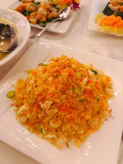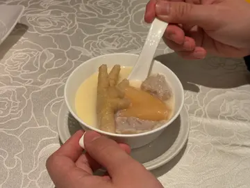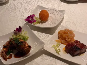 兩人試咗明珠二小弄 $209 一位嘅尊享套餐,整體有驚喜亦有小遺憾,算係性價比唔錯嘅體驗。最鍾意杏汁花膠白肺湯,一盅落肚好滋潤,杏香夠濃又唔會蓋過食材本身鮮味,花膠軟糯唔腥,我本身鍾意清潤湯水,呢款完全合心意。前菜海蜇爽脆開胃,義燒皇外皮焦香,肉質肥瘦均勻,蜜汁甜度剛好。豉油皇大虎蝦鮮甜彈牙,醬汁惹味;蠔皇四頭鮑魚厚身彈牙,玉掌炆得軟糯入味。百花炸釀蟹幾有特色,蝦膠彈牙包住蟹肉,外層香脆。不過上湯浸翠苗就一般般,翠苗夠嫩但上湯鮮味唔夠突出,比較平淡。櫻花蝦蛋白炒飯粒粒分明,蛋香與蝦香融合,唔油膩;楊枝甘露甜度適中,芒果香濃,柚肉爽口,收尾好舒服。整套套餐份量夠兩人食,食材新鮮,除咗翠苗略遜,其他都幾有水准,$209 一位算抵食。