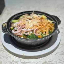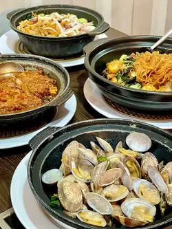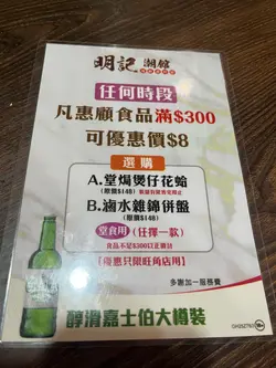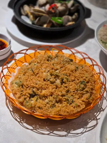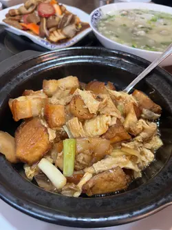Visited this Chiu Chow resto with colleagues for farewell dinner. .We ordered the following dishes to share:-Braised Goose (HKD180)The goose was well-marinated but not very meaty and contained quite a lot of bones and fat. The dish had a bottom filled with smooth and soft tofu. -Porridge with Baby Oyster & Minced Pork (HKD128)The porridge had a fish soup base with minced pork. The rice grains were soft and not too sticky. The oyster did not have a fishy smell in general, and combined nicely with the soup, creating a sweet flavour. -Deep-fried Cuttlefish with Salted Egg Yolk (HKD160)Coated generously in salted egg yolk, the cuttlefish had an attractive golden yellow crispy skin. It was very savoury with a pleasantly chewy texture. -Mud Crab (HKD328)Accompanied by vermicelli, the mud crab was cooked with ginger and typhoon shelter-style sauce, giving it a more aromatic smell. -Tung Choi with XO Sauce in Stone Pot (HKD118)The tung choi absorbed the XO sauce thoroughly and had great wok hei. It was fresh and easy to bite into. -Deep-fried Crispy Baby Oyster Cake (HKD118)The oyster cake was filled with plump baby oysters, and dipping them in the fish sauce elevated the umami of the oysters. Its exterior was quite crunchy. -Braised Assorted Platter (+HKD8)To celebrate their sixth-year anniversary, the resto offered a promotion which allowed us to add HKD8 to order this dish after consuming a total of HKD300. The platter included goose intestines, goose kidneys, pork belly slices, pig intestines, cuttlefish, etc. Liked the elastic goose intestines the most. -Braised Bean Curd (HKD108)The bead curd was served with mushrooms and choi sum on the side. It didnt taste particularly memorable though. -Chinese Kale with XO Sauce in Stone Pot (HKD118)It was served piping hot and smelled good. Couldn't really recall its taste though. .The resto has a wall of pictures showcasing different celebrities who have visited them. It gets more and more ppl after 20:00. …Read More