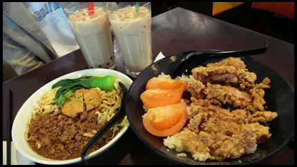 炸魚餅鹵肉拌麵