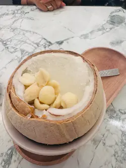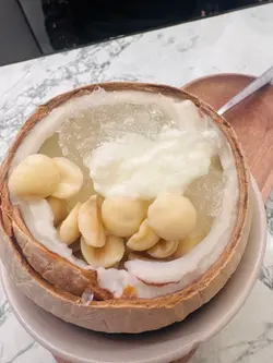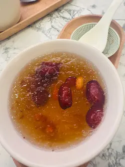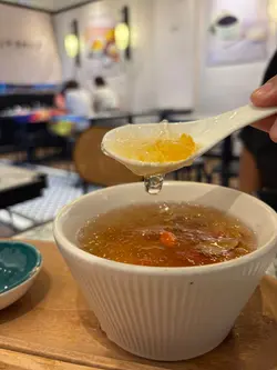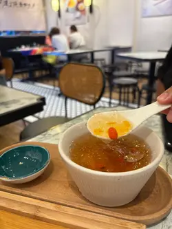 今日我們二人一起吃了午飯,再吃甜品。我們覺得天氣開始轉涼🌬️,就去了星十五吃中式糖水,很適合秋冬飯後甜點😋。我們二人叫了三個甜品,吃甜品真的有第二個胃。🤍蓮子雪燕椰皇燉鮮奶椰皇的香氣特別足,一入口就是很清新的椰味。鮮奶燉得特別順滑,雪燕口感豐富,吃完嘴裡還留著淡淡的椰香。❤️紅豆沙豆腐花豆腐花嫩到用勺子一碰就晃,入口即化。紅豆沙熬得很綿密,能吃到細小的紅豆顆粒,陳皮味道很香濃,甜度剛剛好,熱乎的一碗下肚,胃里暖暖的,特別治癒。🧡紅棗杞子雪燕燉桃膠紅棗味濃,有點偏甜,吃起來紅棗的甜和杞子的微酸融合得很好,整體味道很溫潤。
