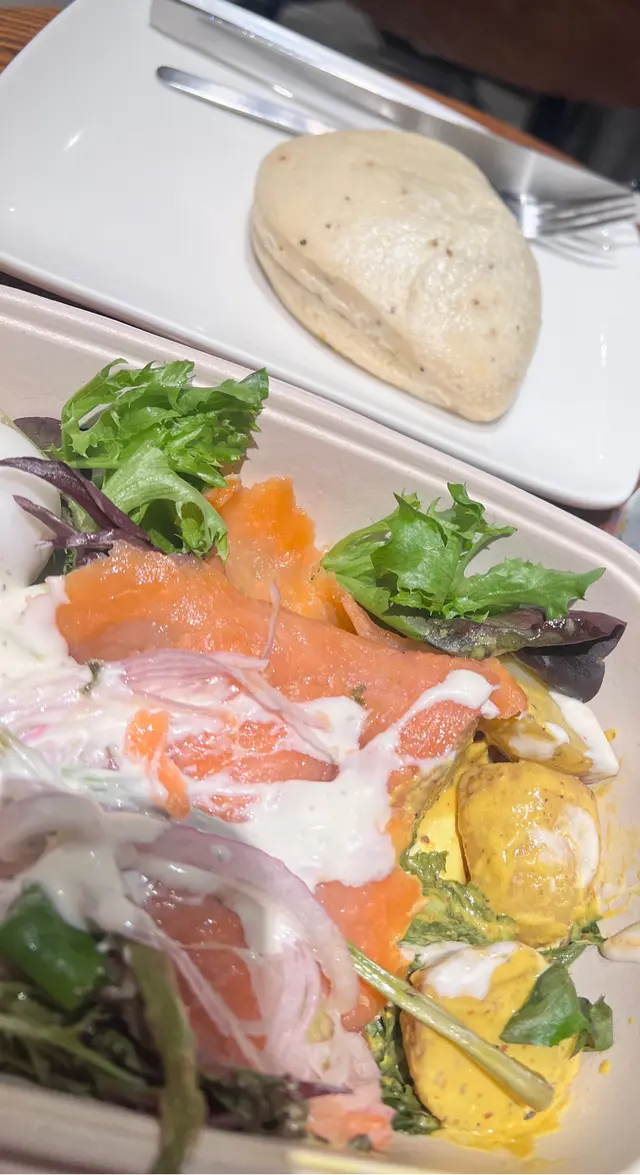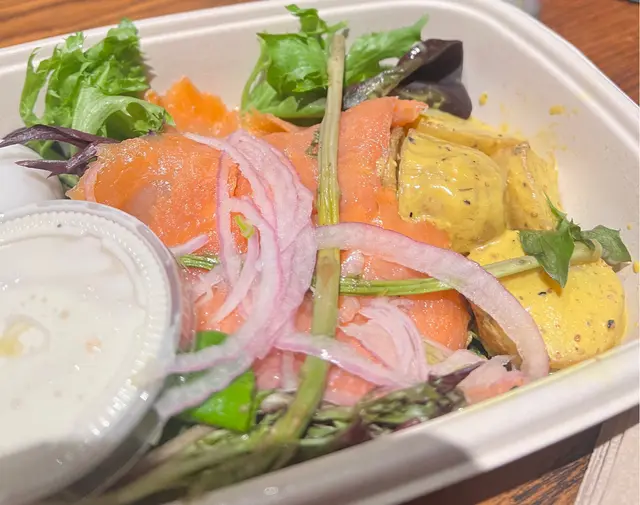 星巴克lunch 想食清淡啲就諗到salad ,去左星巴克,買左份三文魚薯仔沙律🥗加個 蘑菇忌廉芝士包 三文魚薯仔沙律 感覺好健康 ,有蛋白質 有纖維,營養齊哂 蘑菇忌廉芝士包 熱辣辣 好好味 ,食完有啲罪惡感啊 哈哈 怕肥~但好香口整體份量夠飽查看更多