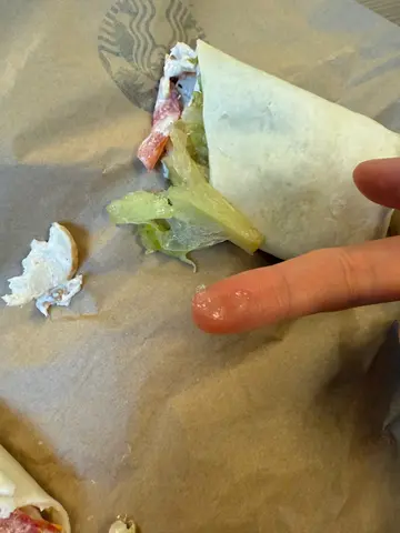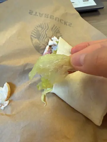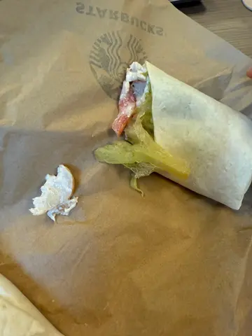 雞肉凱撒沙律卷 無揀加熱格左十分鐘先拎到返公司食但生菜係結冰 食落食沙冰咁😔個wrap切一半但無切到底 要自己扯開不理想 撇除食物,職員都好友善此分店空間感很好 要行樓梯喔