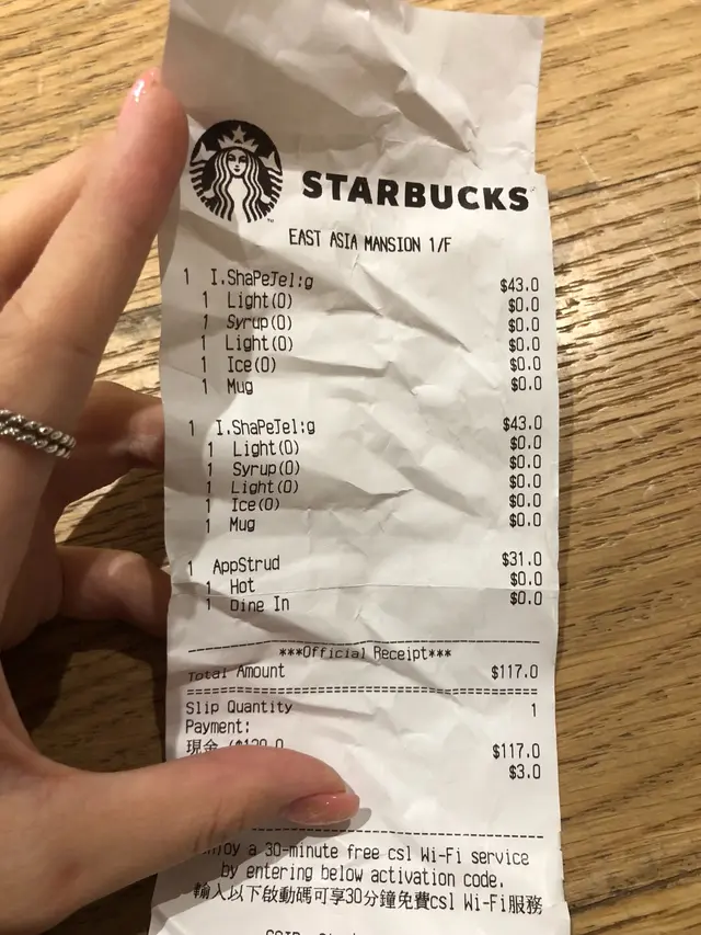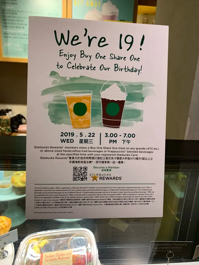 香港starbuck 19週年 所以15:00-19:00 Starbucks會員買Grande size 手調凍飲或星冰樂買一送一即係半價咁滯 就同同事孖住買 我地準時3點鐘到 本身以為會好多人 我地前面等左5-6個人 條龍消得好快 因為Starbucks Reward 入面冇錢 先增值後買野飲 叫左杯朱古力伯爵紅茶啫喱星冰樂同埋紅西柚蜜糖紅茶落單之後等左5分鐘 傾下計好快過因為平時都飲開朱古力伯爵紅茶啫喱星冰樂 朱古力味濃加上earl grey嘅香味 正紅西柚蜜糖紅茶 唔係我飲就唔講啦查看更多