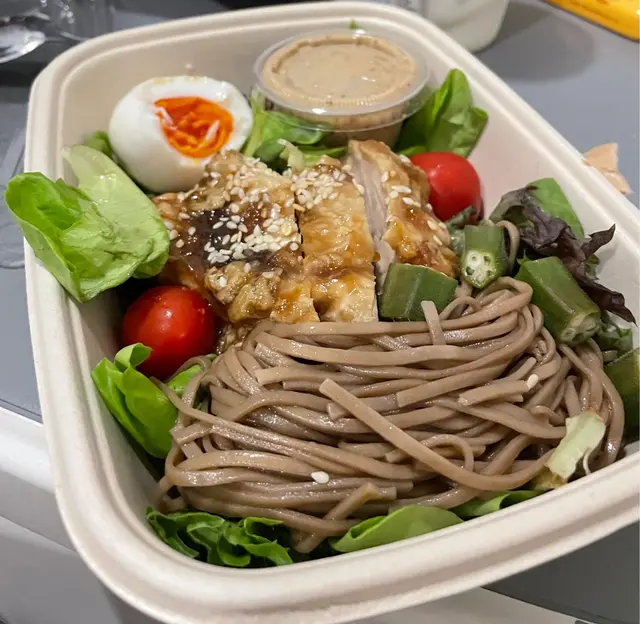喺銅鑼灣返工,收工去嗰度,同朋友傾嘢。氣氛幾好,好似好多人都係嗰邊傾嘢,雖然有啲黑,但我覺得氣氛好唔錯,啲燈打落枱面,令人專注手上嘅工作。嗌咗個沙律,有蕎麥麵、有雞肉、有蕃茄、有沙律菜。都係咁啦,普普通通,唔係為咗食嘢而去,算係一個味道OK又健康嘅選擇,價錢一般。我個朋友嗌咗個greek yoghurt🍓🫐,有啲雜莓,有啲穀物喺上面。都係不過不失,係健康嘅選擇。職員都幾好,快手快腳,好Nice 。